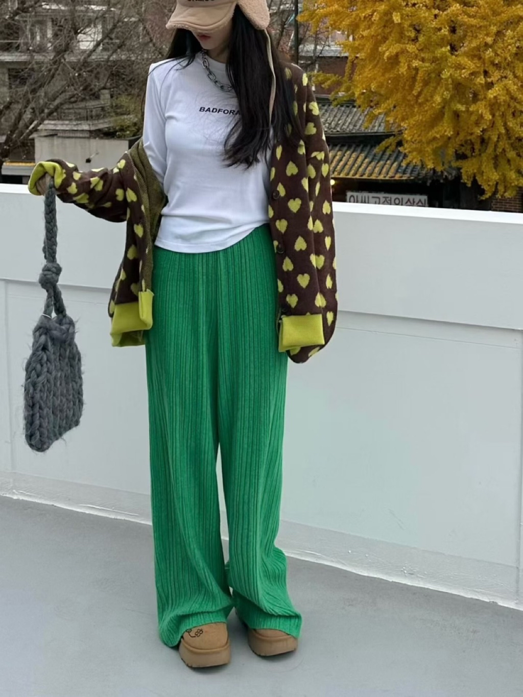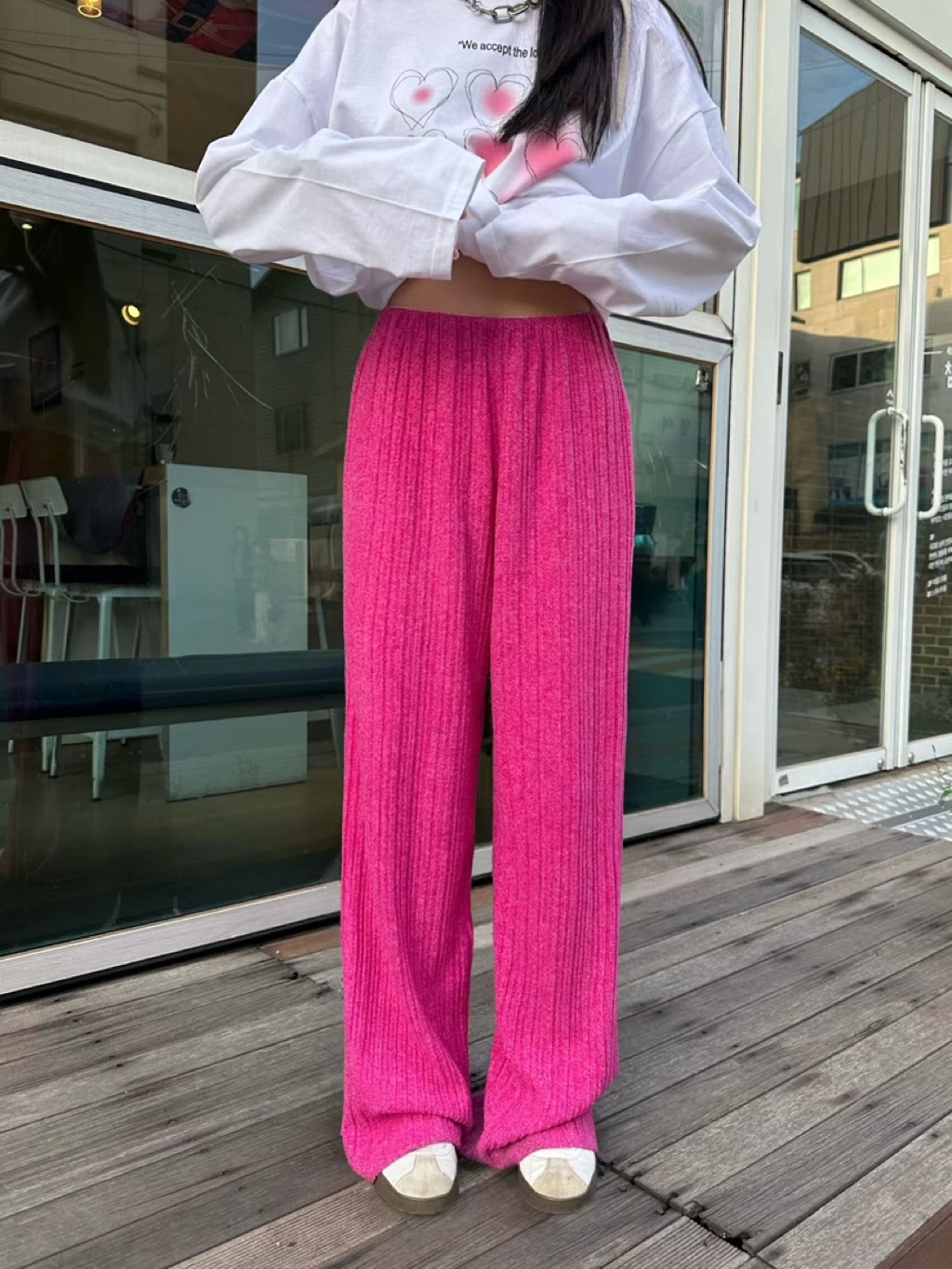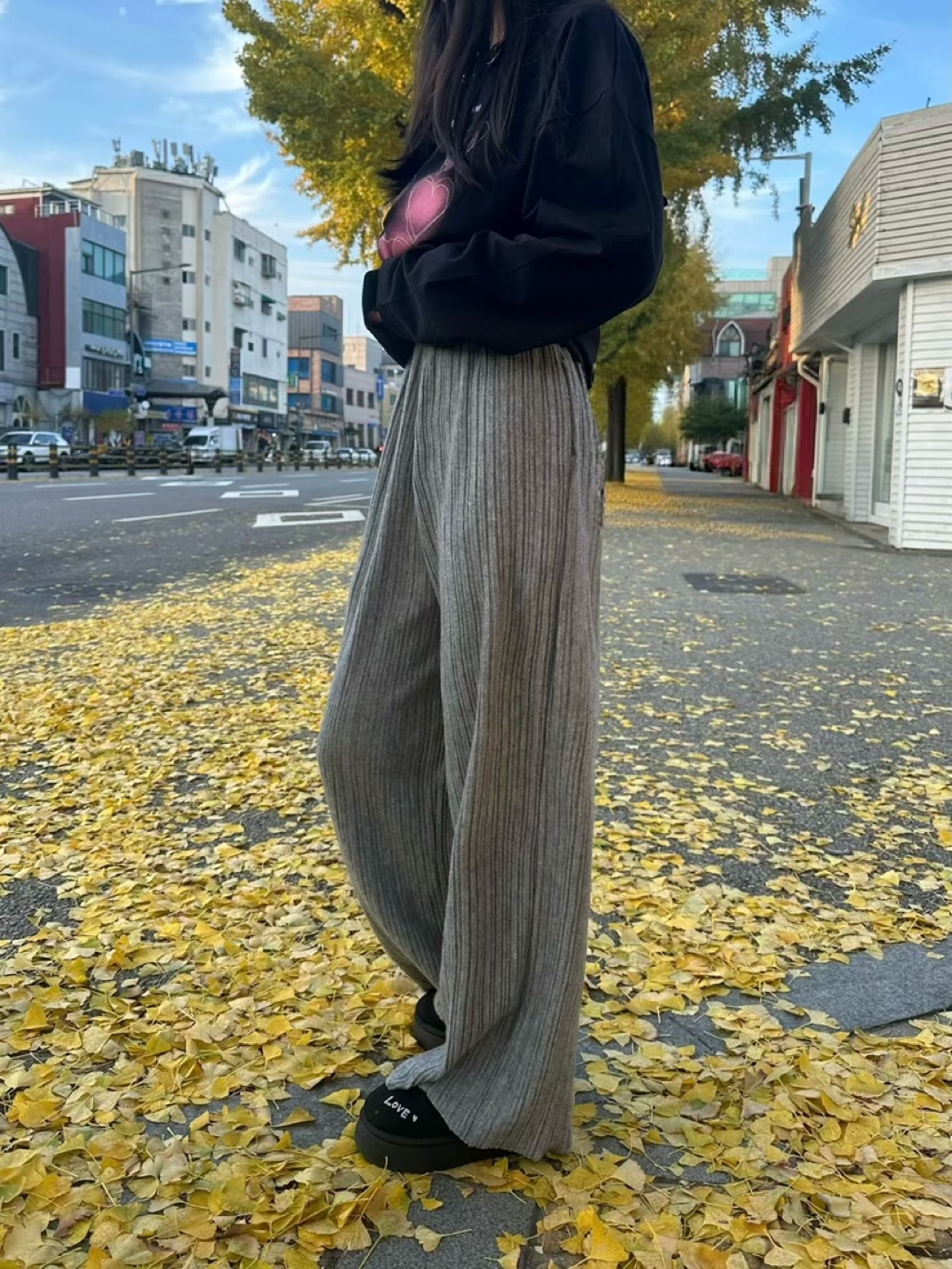 [ 7loong ] 正韓預購 東大門選品 25FW秋冬 直紋磨毛彈性腰頭長褲(共5色)