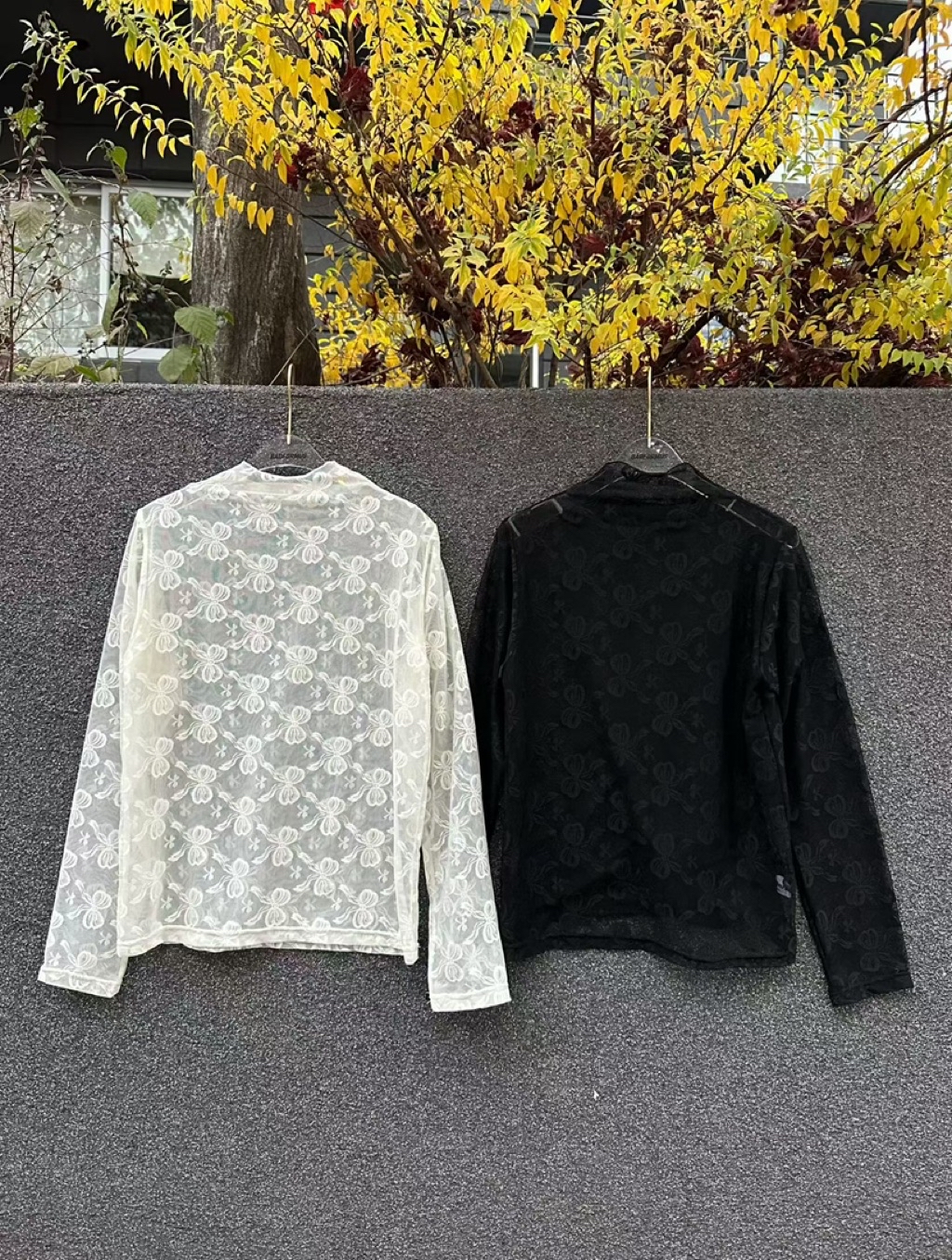 [ 7loong ] 正韓預購 東大門選品 25FW秋冬 蝴蝶結圖案微高領透膚上衣(共2色)