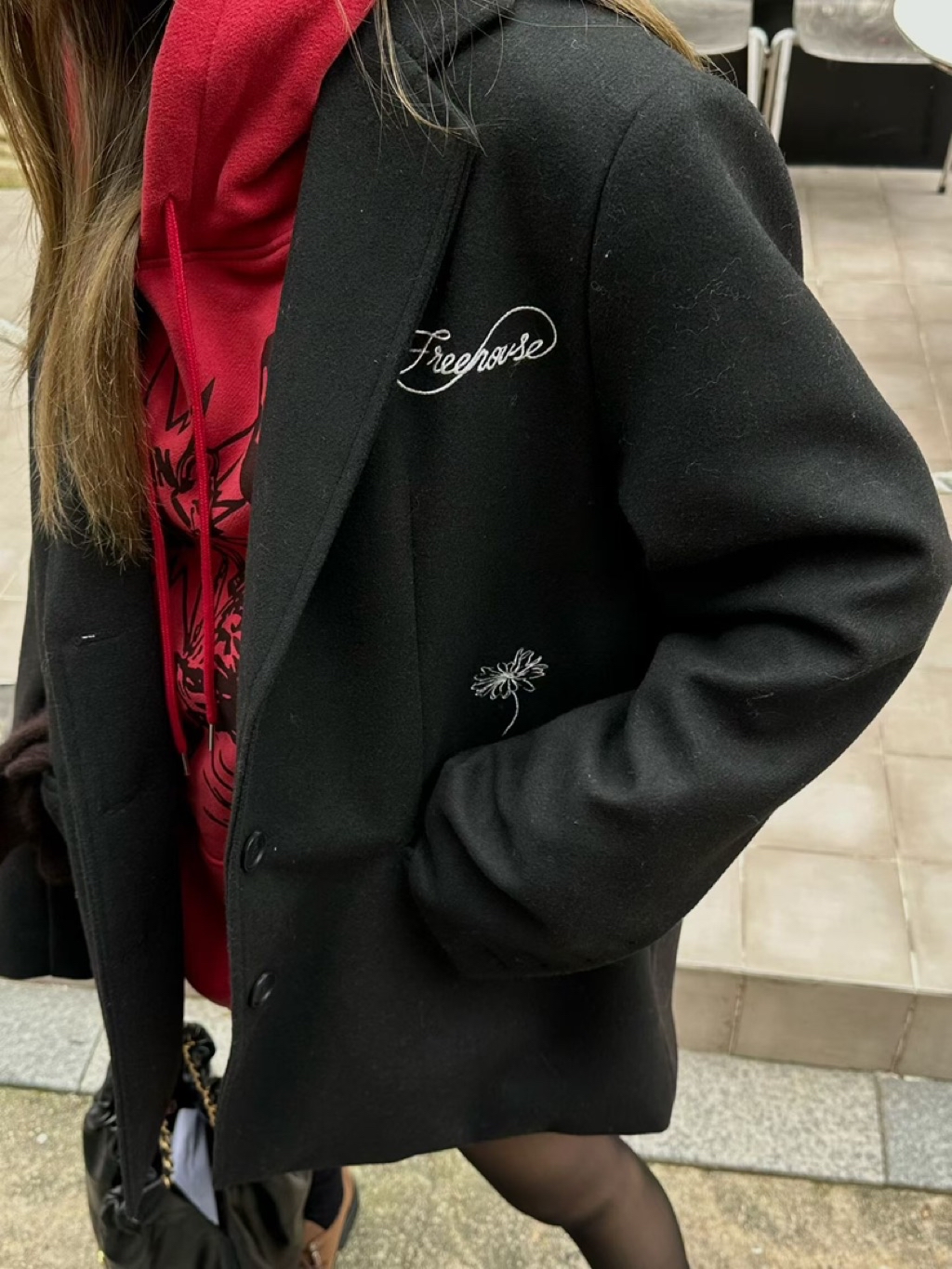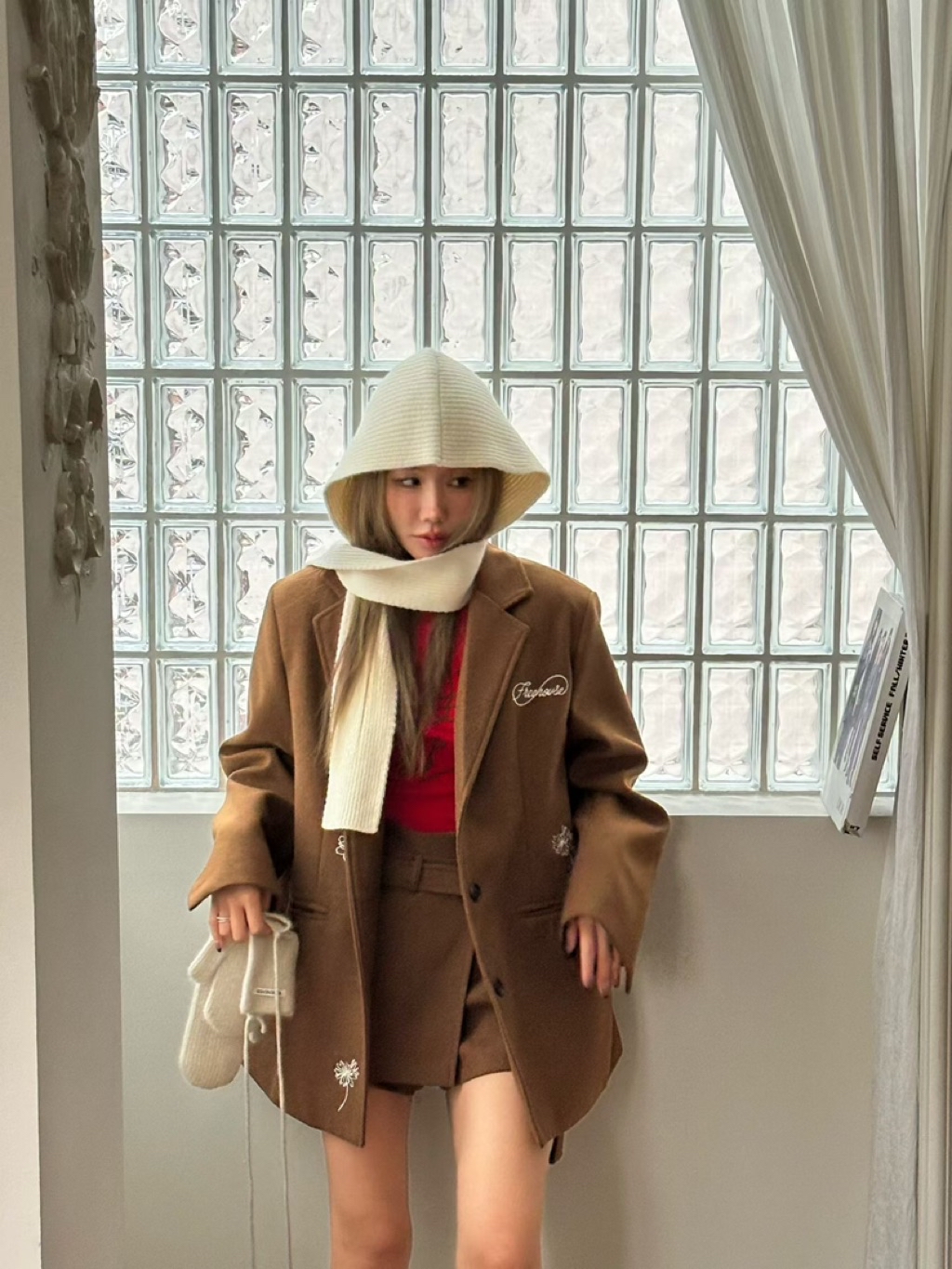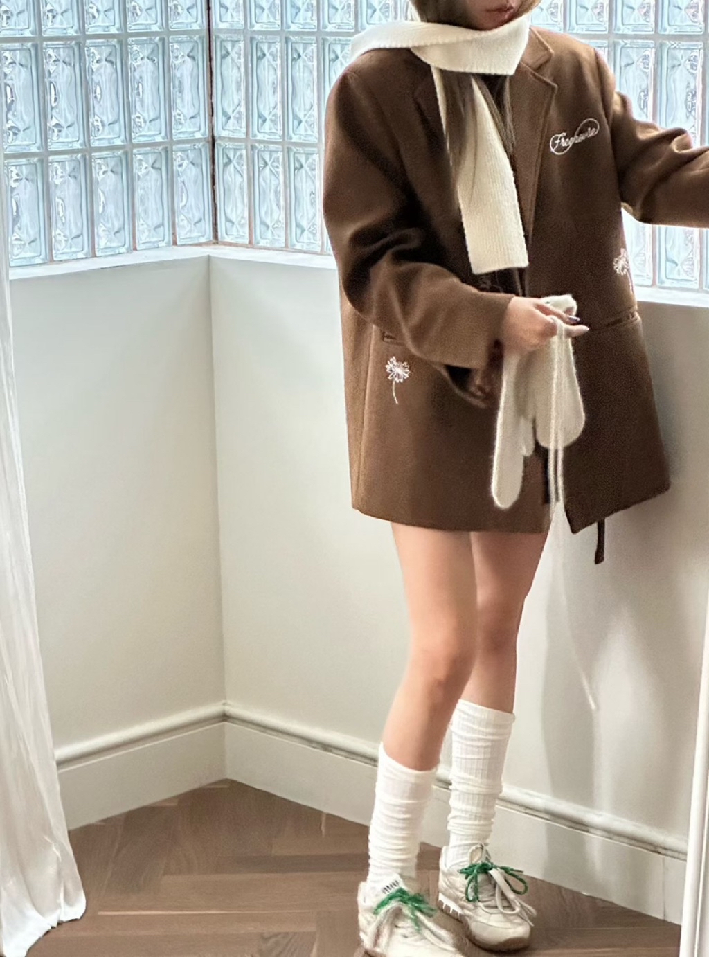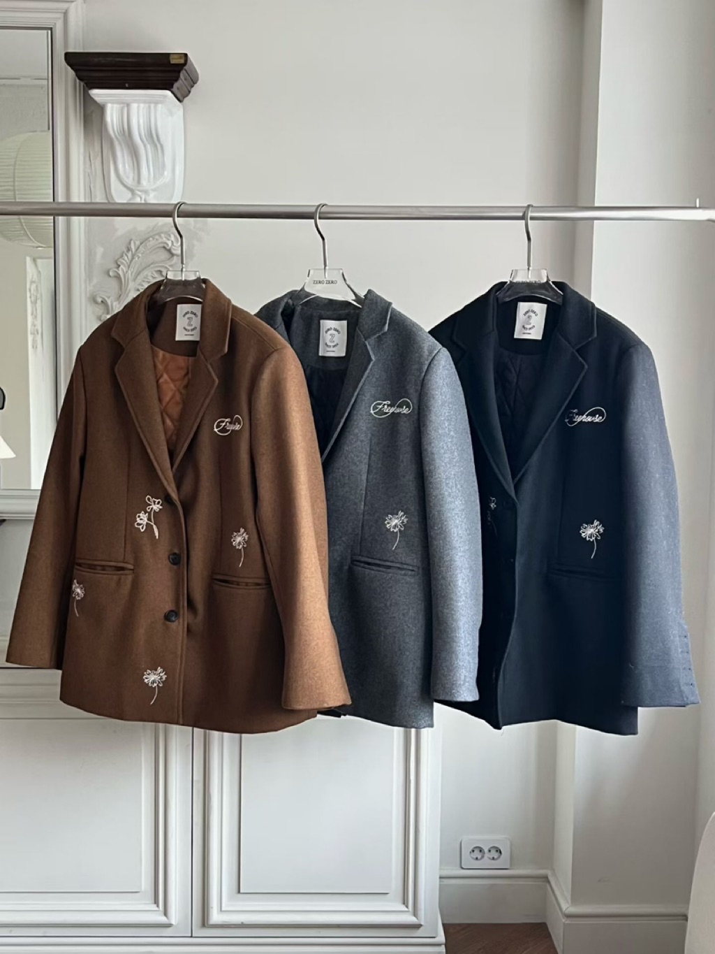 7loong 此款西外有30%羊毛,內有鋪棉,超有質感,小雛菊刺繡很簡約的可愛,超推推!!