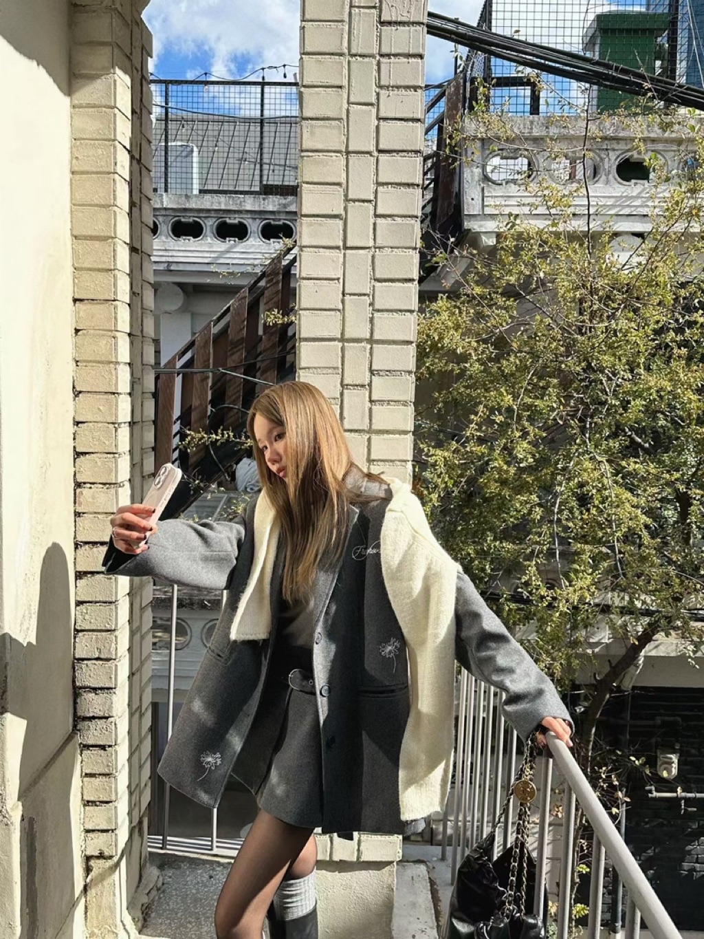 [ 7loong ] 正韓預購 零零家 25FW秋冬 高質感小雛菊刺繡混羊毛西裝外套+混羊毛腰帶褲裙(共3色)