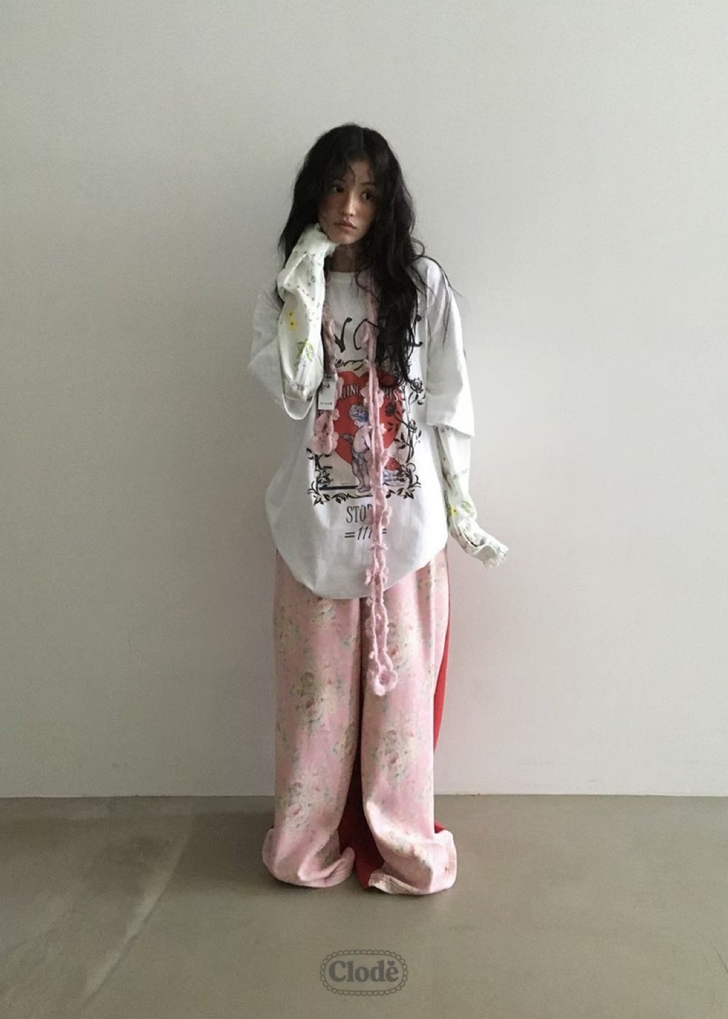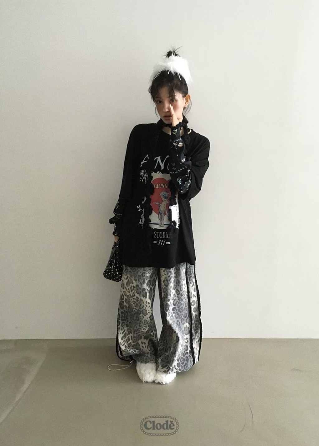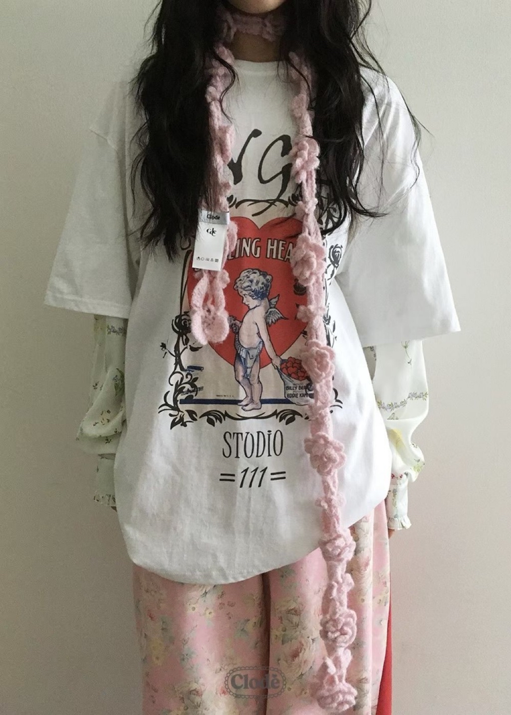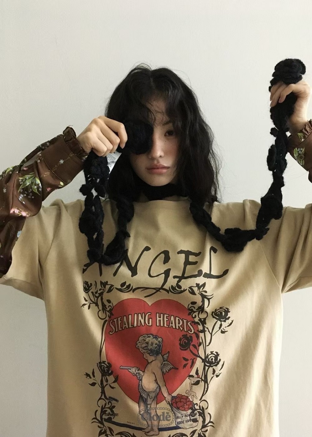 [ 7loong ] 正韓預購 Clode 25FW秋冬 天使圖案拼接印花透膚手袖長版上衣(共3色)