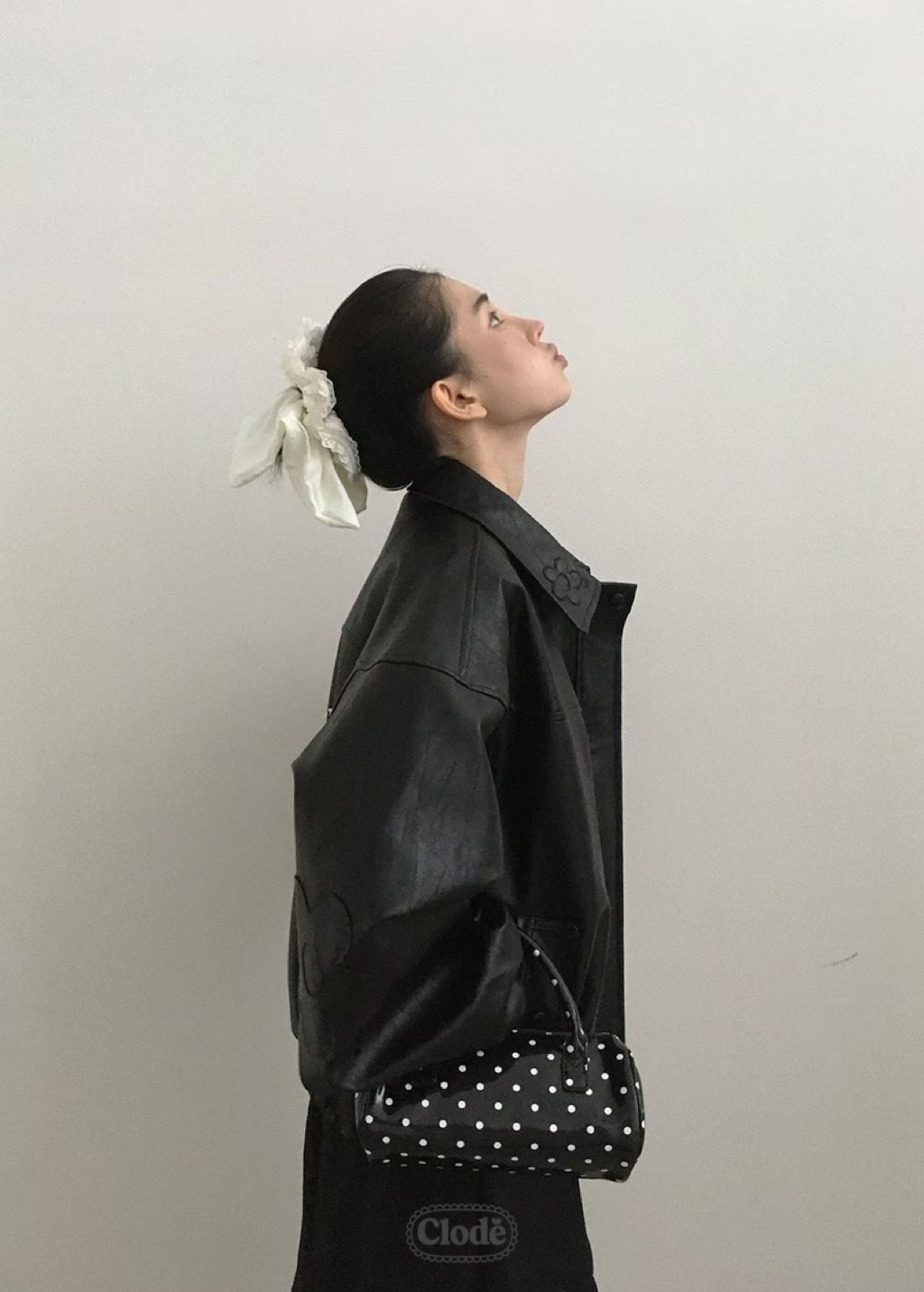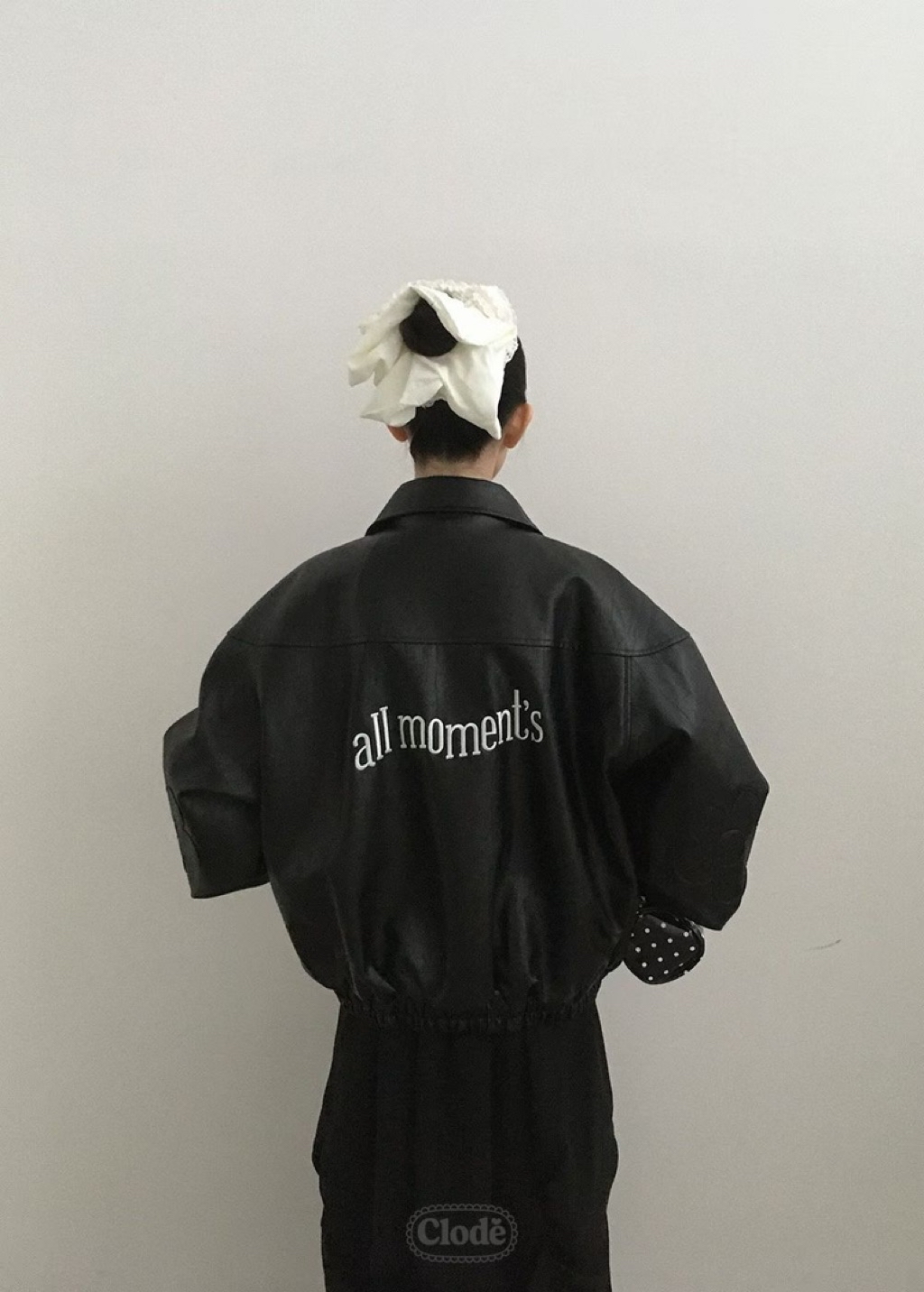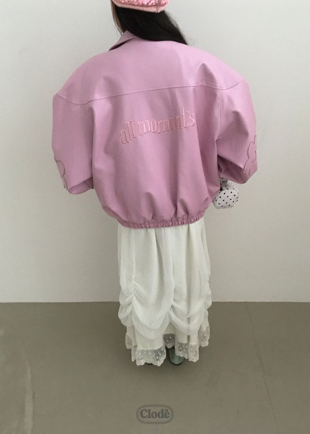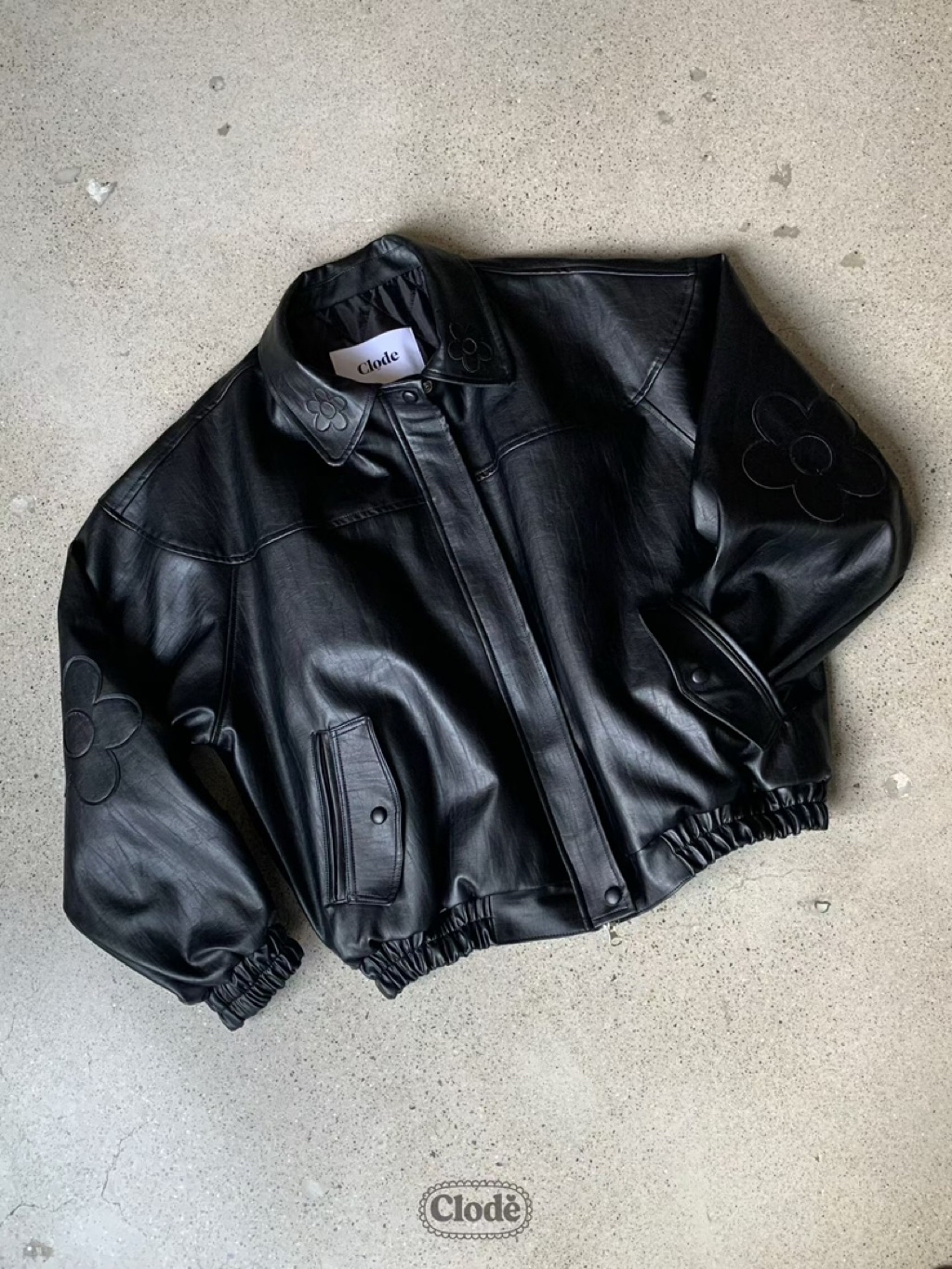[ 7loong ] 正韓預購 Clode 25FW秋冬 韓國網紅歐膩同款 背後英文字花朵刺繡內鋪棉仿皮革外套(共2色)