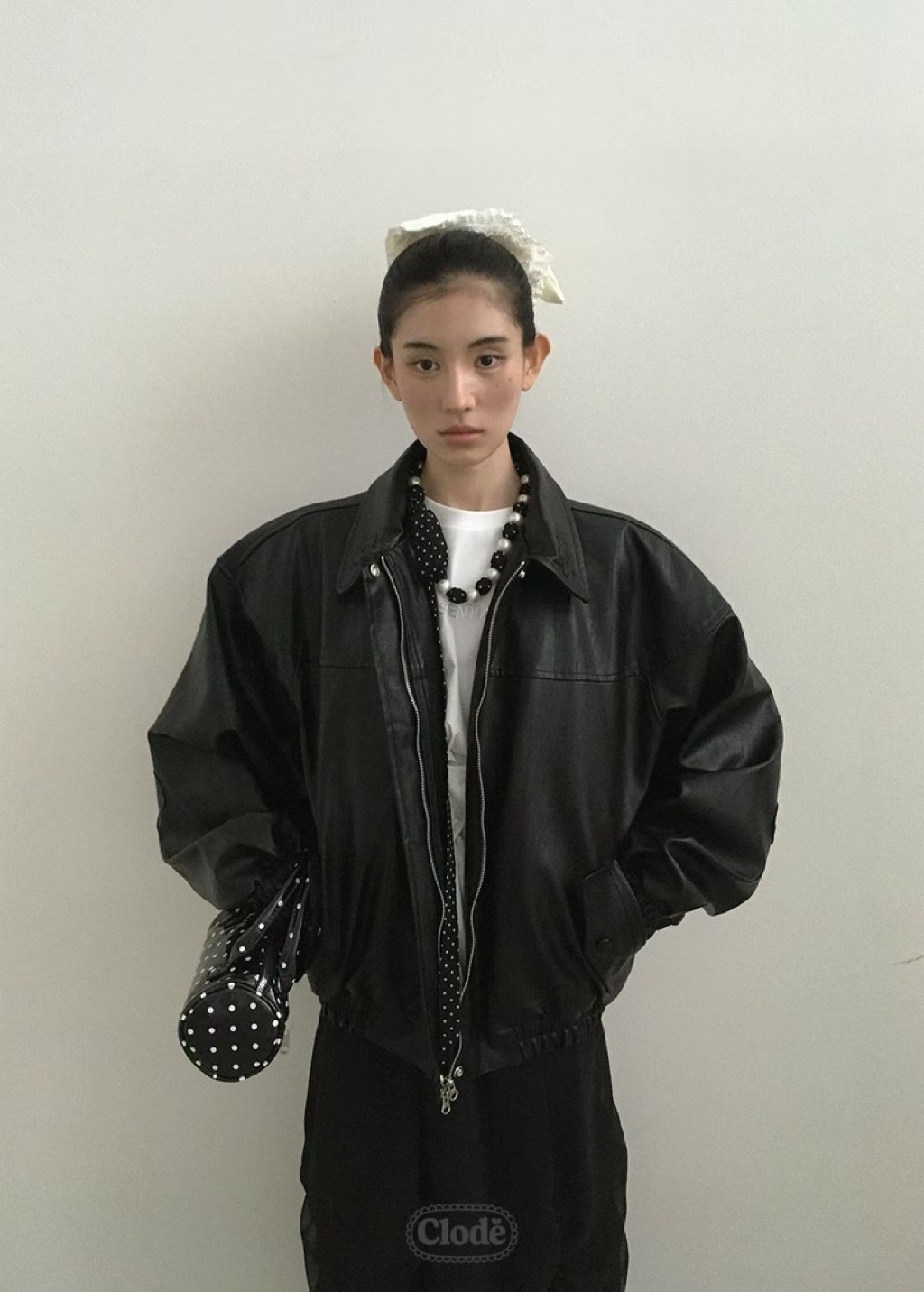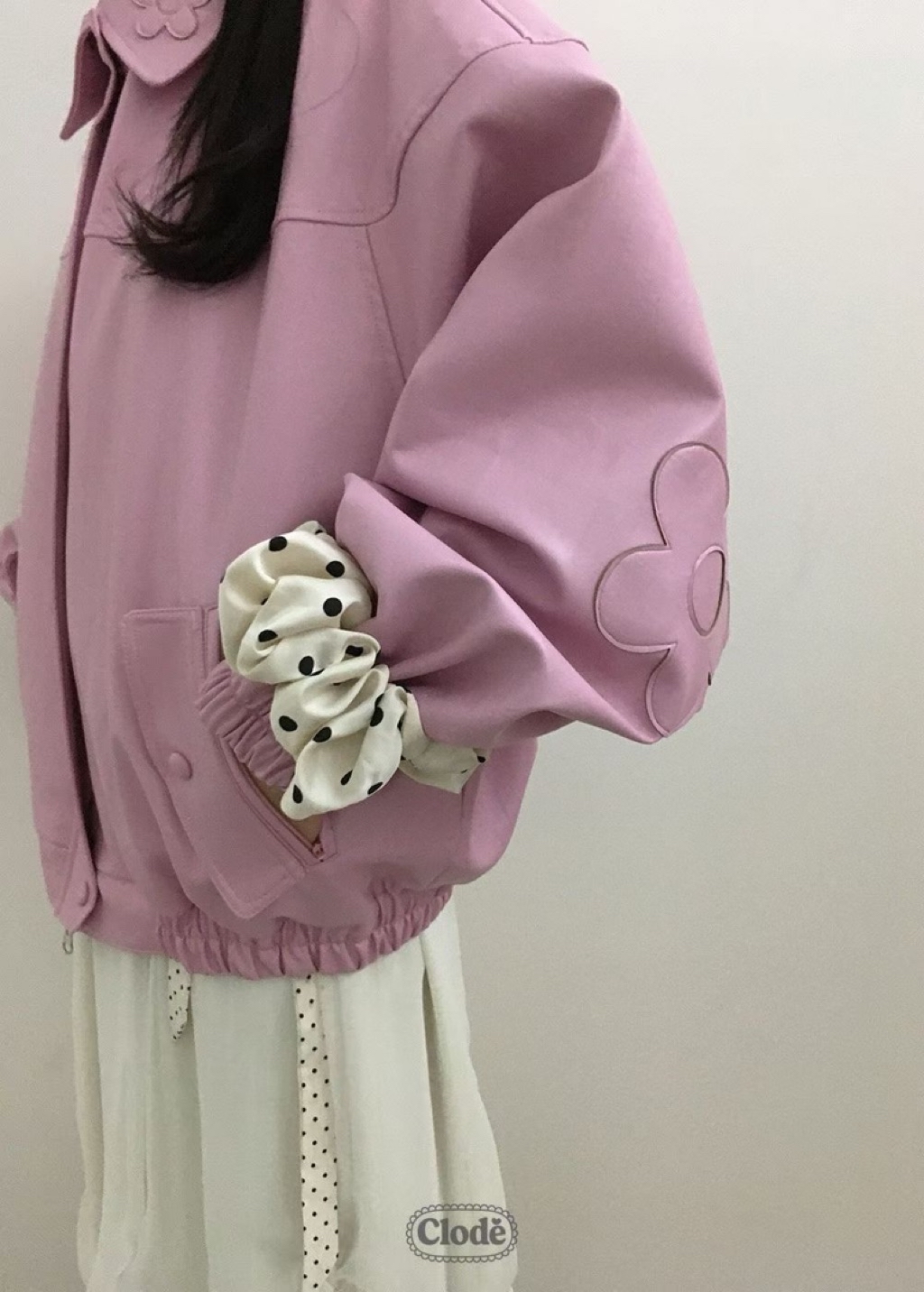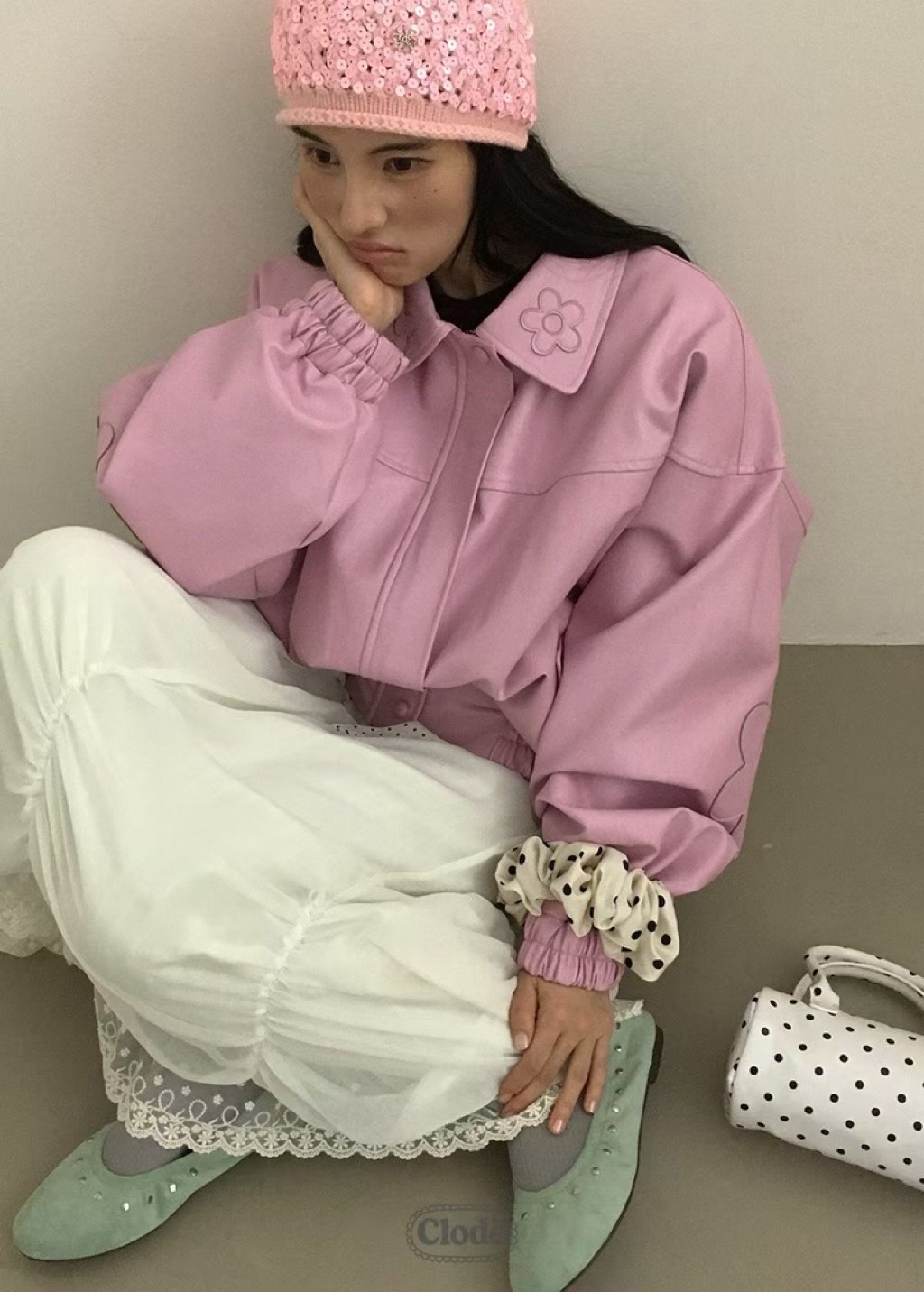 [ 7loong ] 正韓預購 Clode 25FW秋冬 韓國網紅歐膩同款 背後英文字花朵刺繡內鋪棉仿皮革外套(共2色)