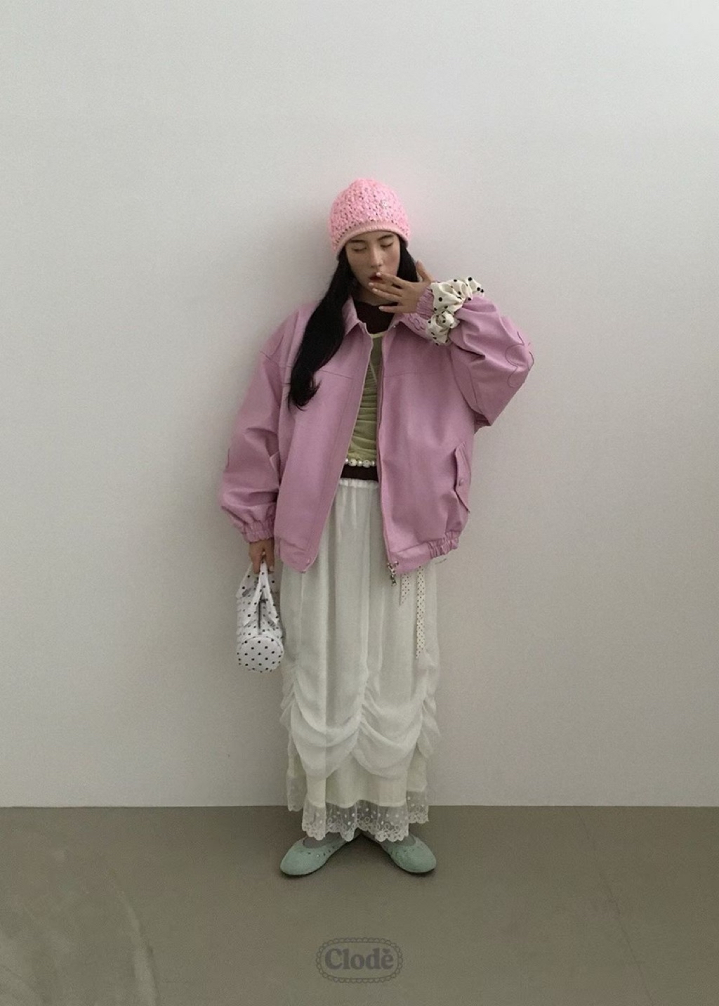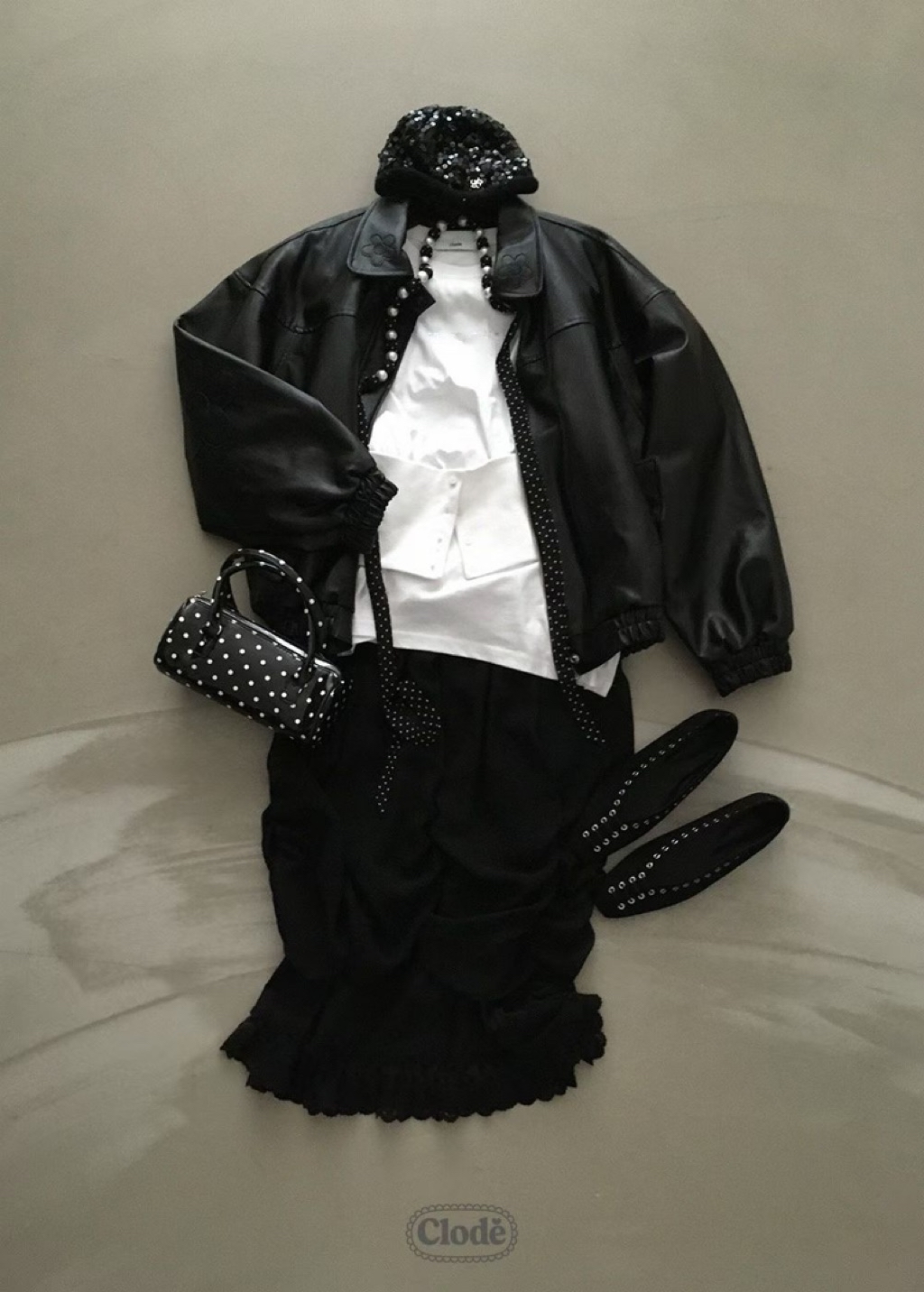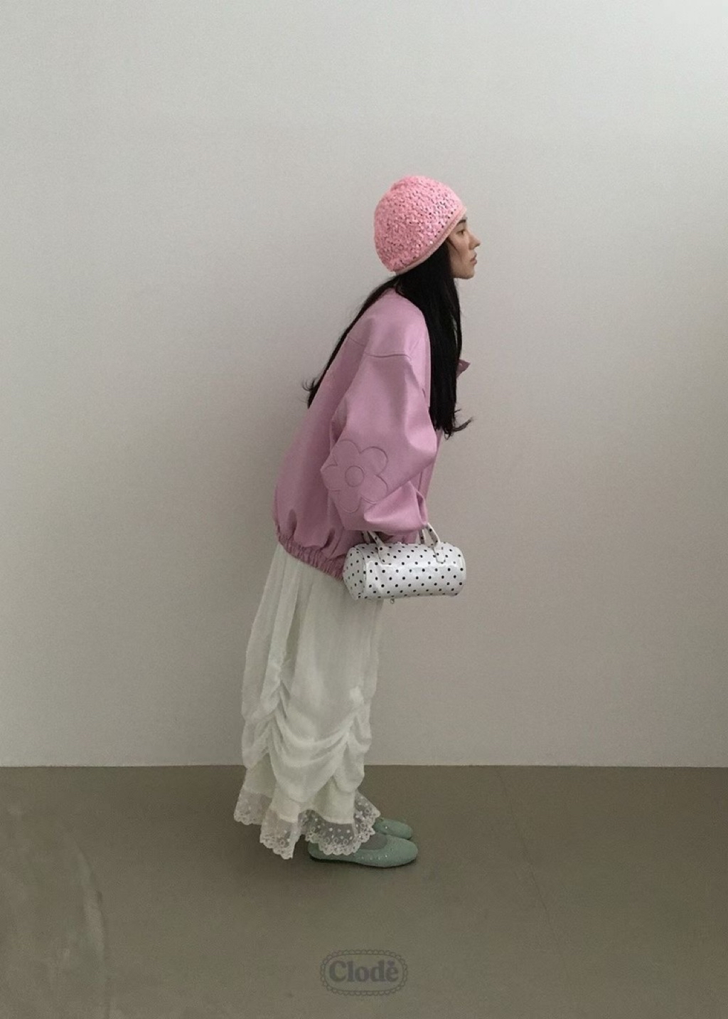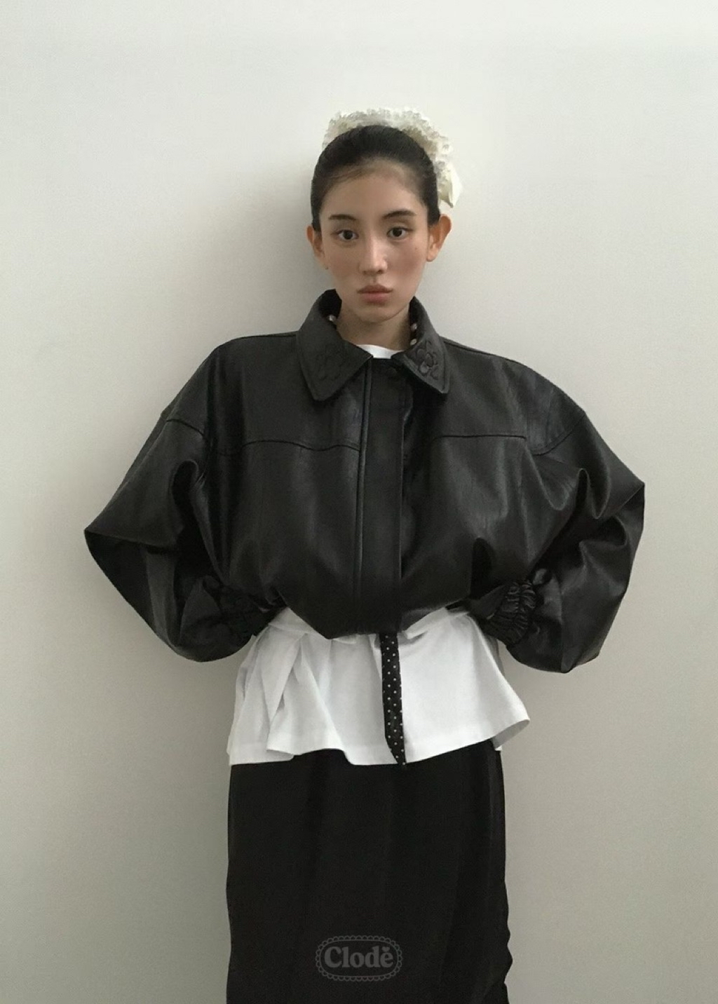 [ 7loong ] 正韓預購 Clode 25FW秋冬 韓國網紅歐膩同款 背後英文字花朵刺繡內鋪棉仿皮革外套(共2色)