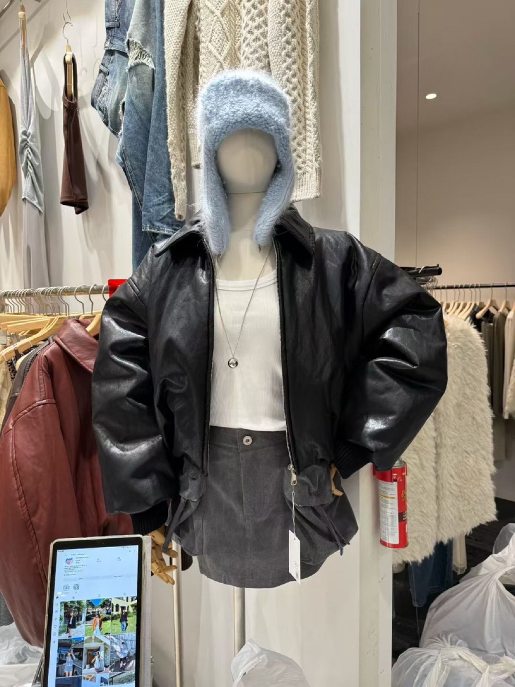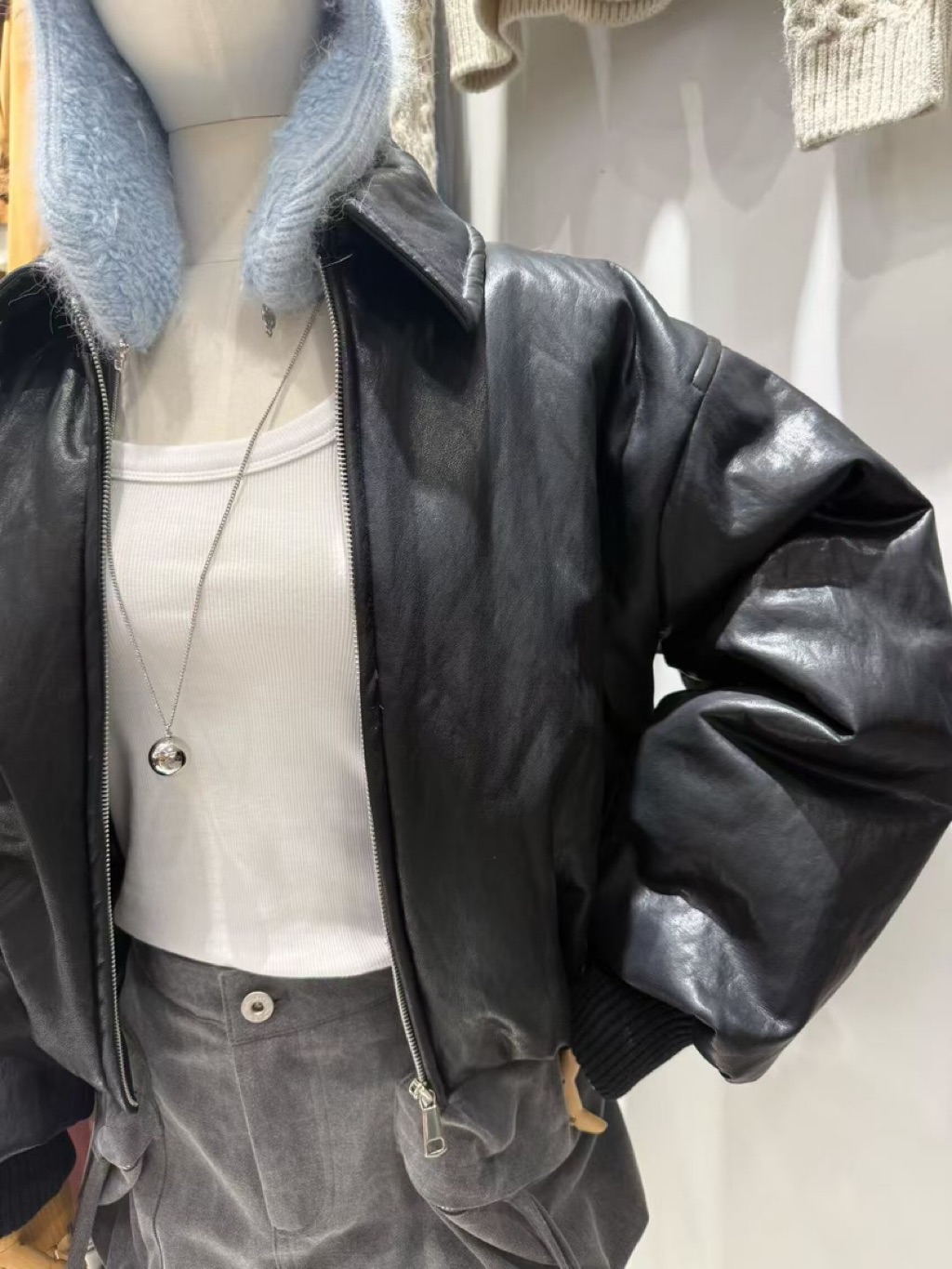 [ 7loong ] 正韓預購 東大門選品 25FW秋冬 Jennie相似款 襯衫領澎澎下擺內鋪棉仿皮革外套(共3色)