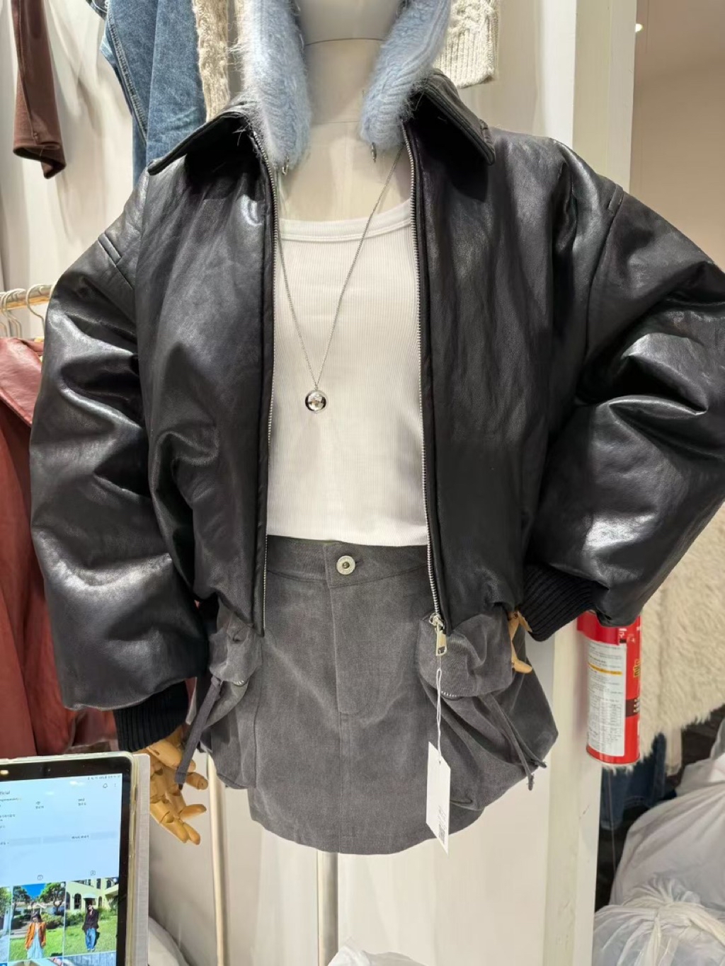 [ 7loong ] 正韓預購 東大門選品 25FW秋冬 Jennie相似款 襯衫領澎澎下擺內鋪棉仿皮革外套(共3色) 總分: 0 - 0 評價