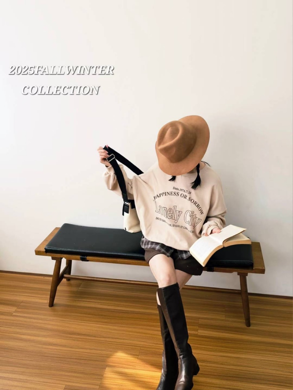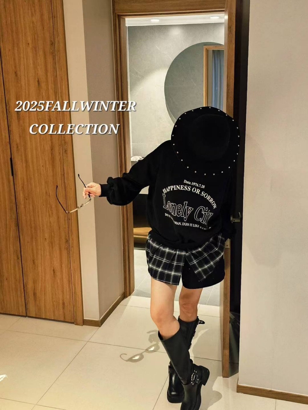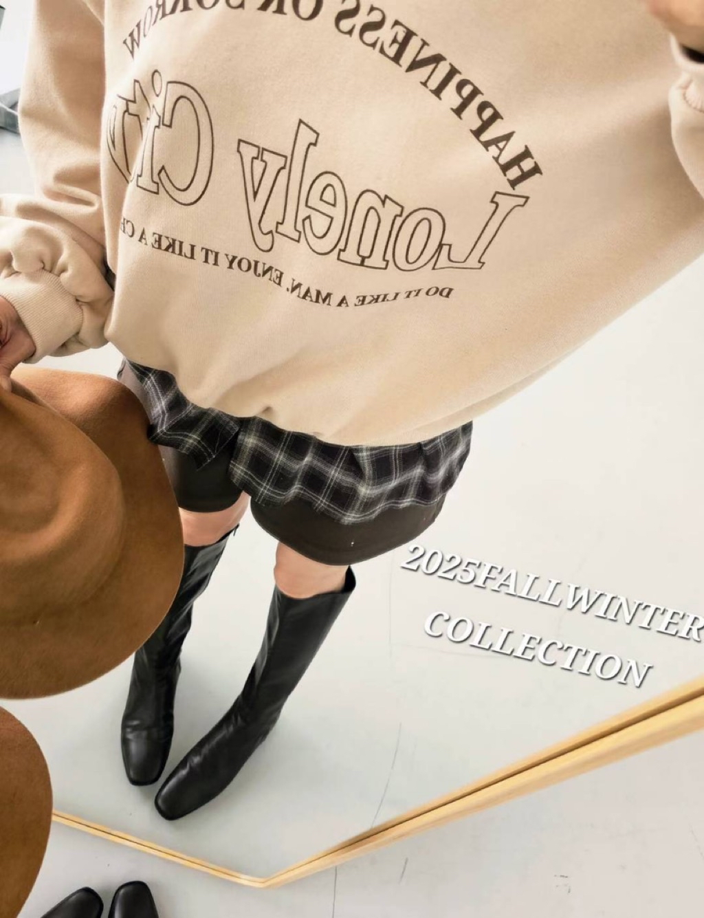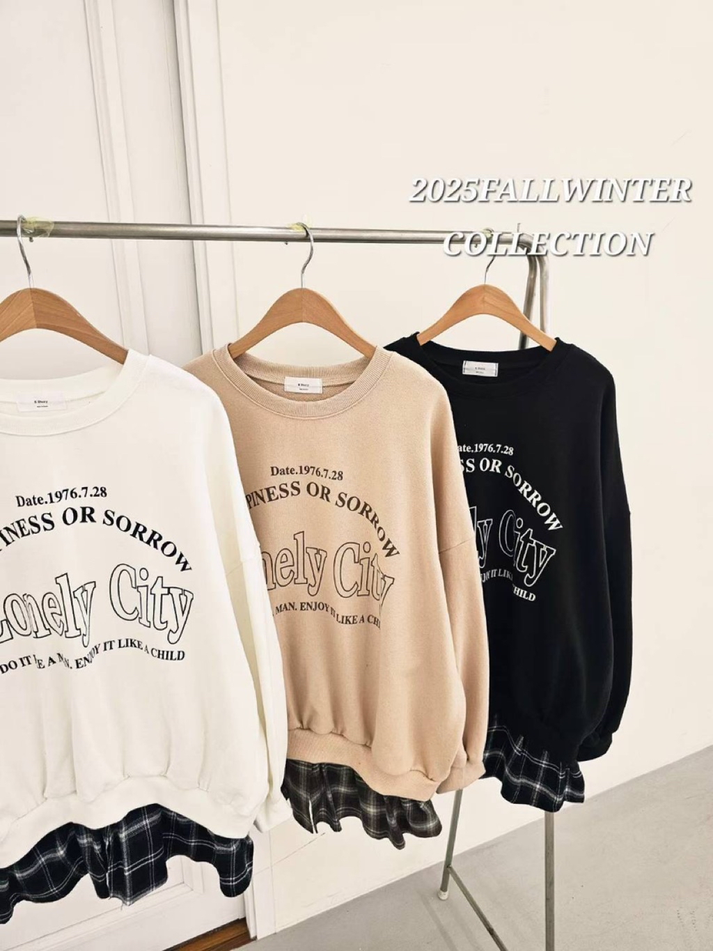 [ 7loong ] 正韓預購 時尚歐膩 25FW秋冬 拼接下擺格紋大學T(共3色)