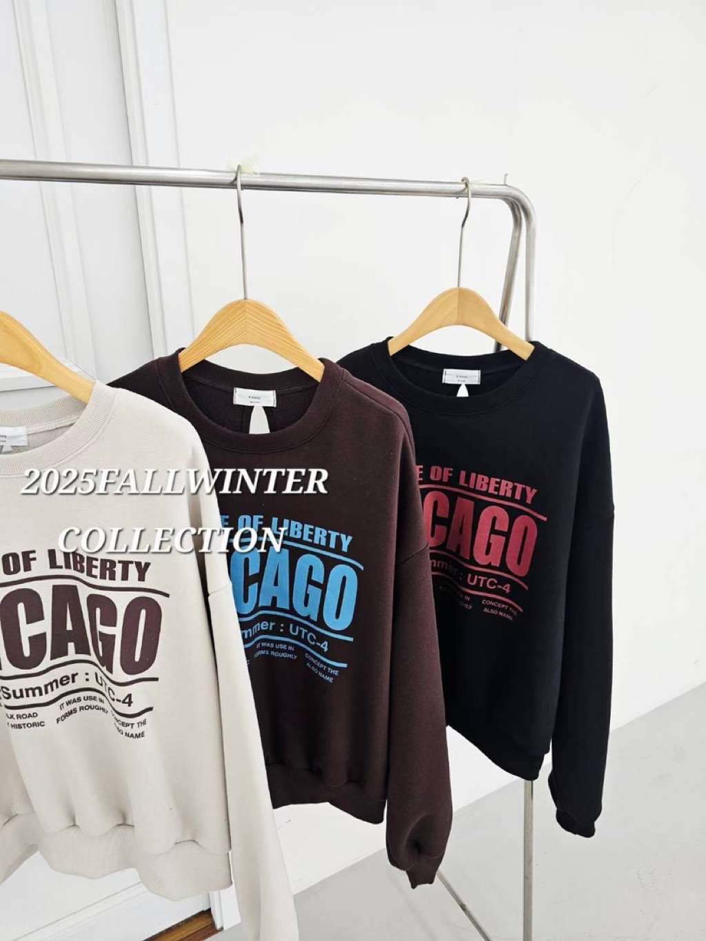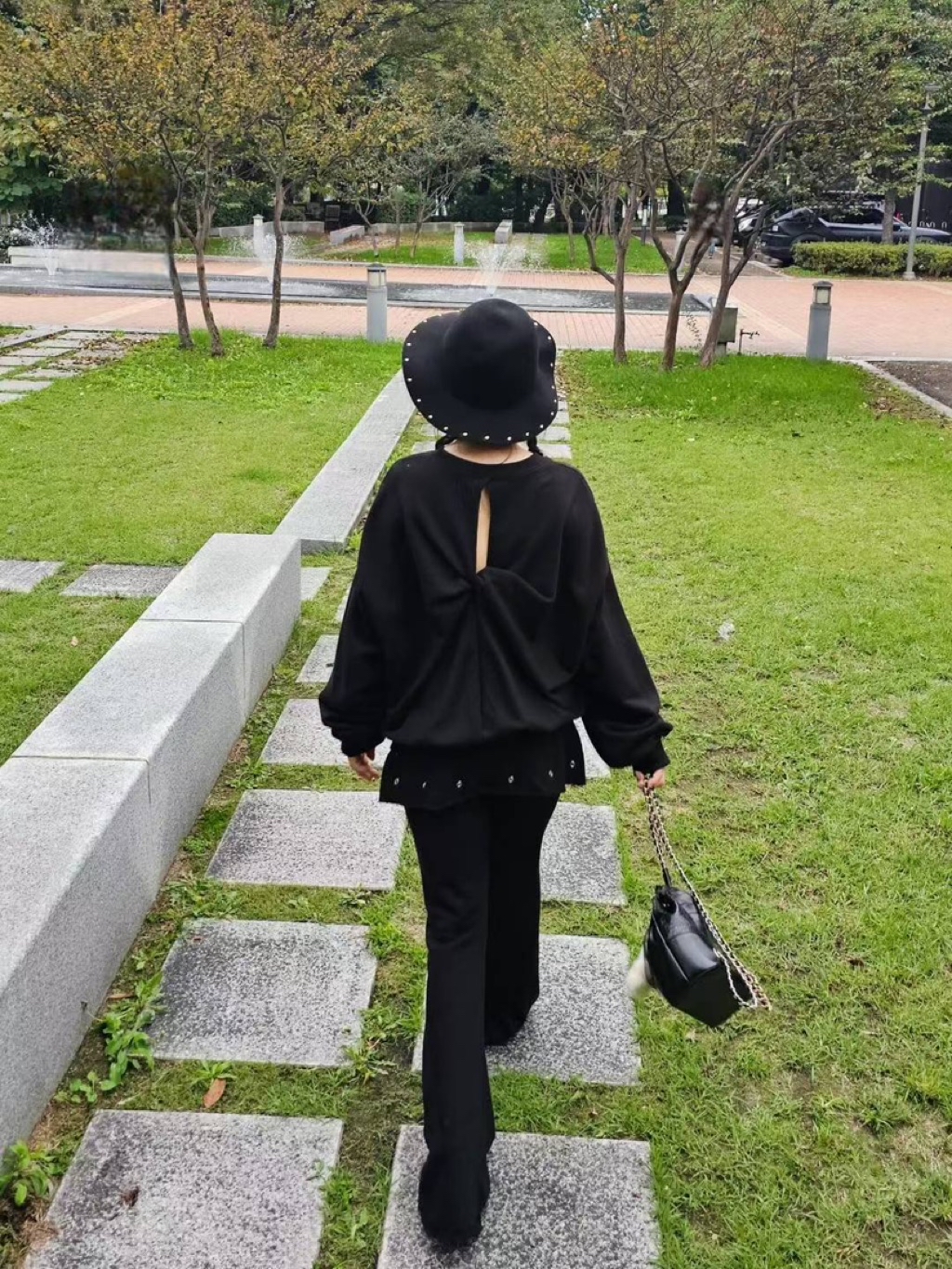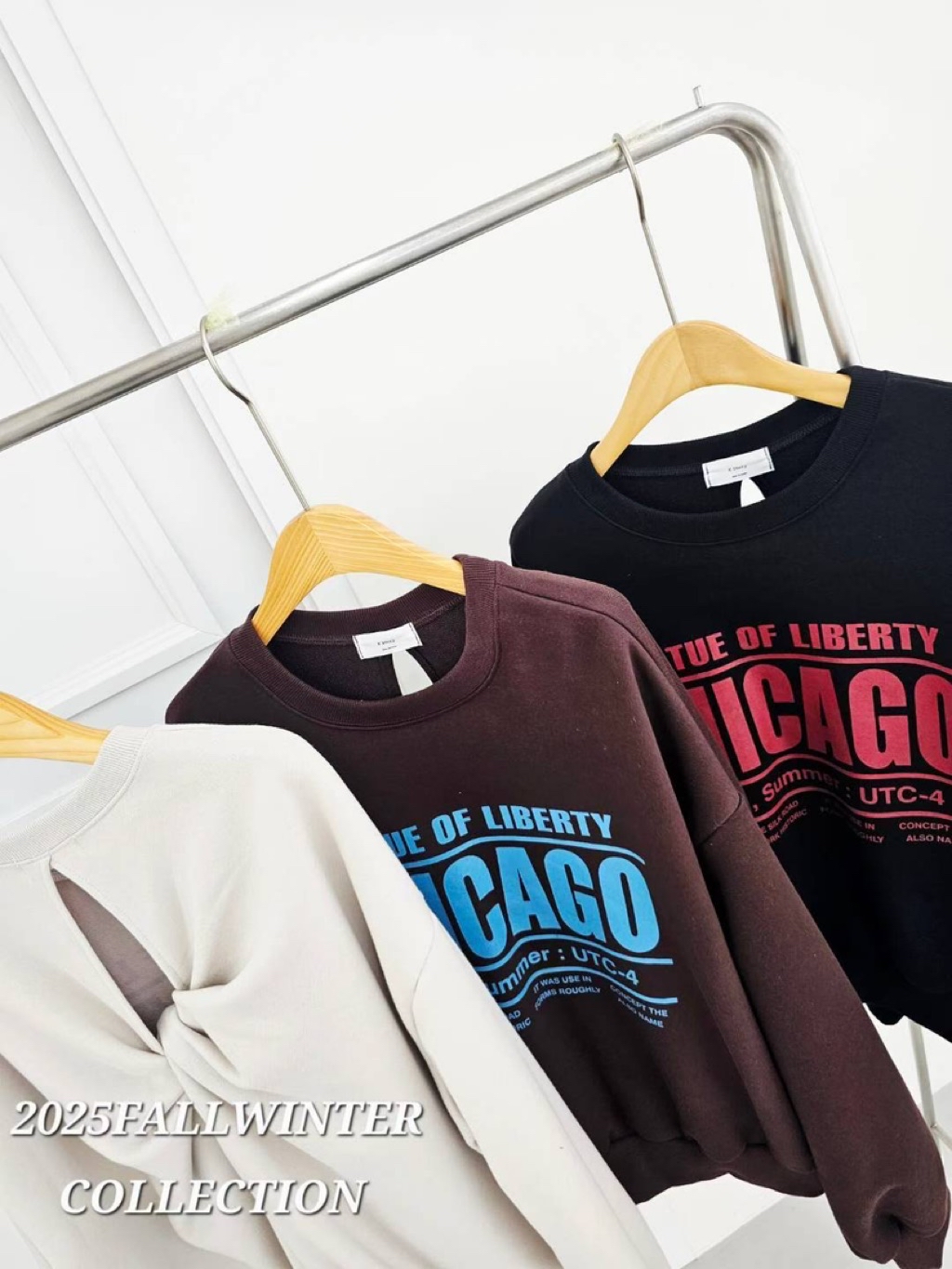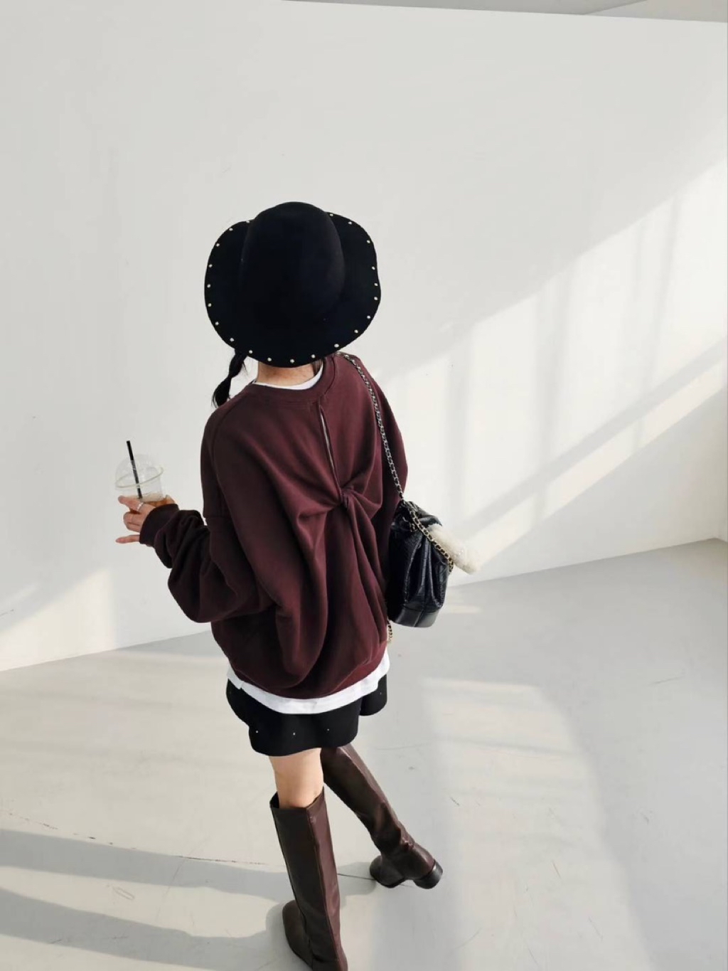 [ 7loong ] 正韓預購 時尚歐膩 25FW秋冬 英文字圖案背後摟空扭結大學T(共3色)