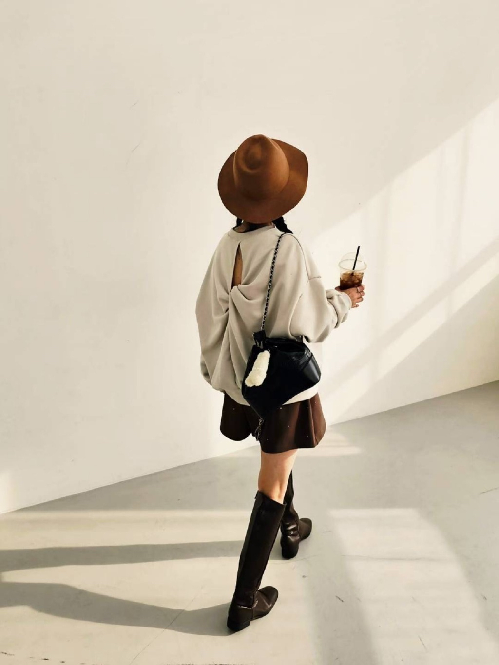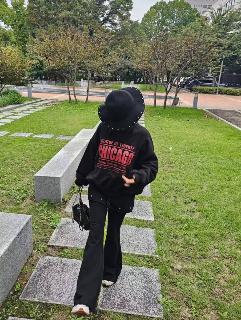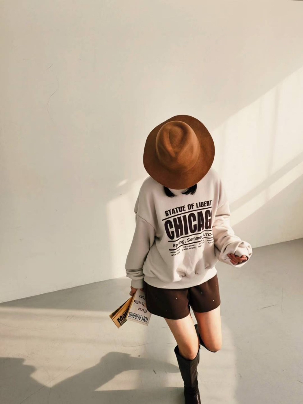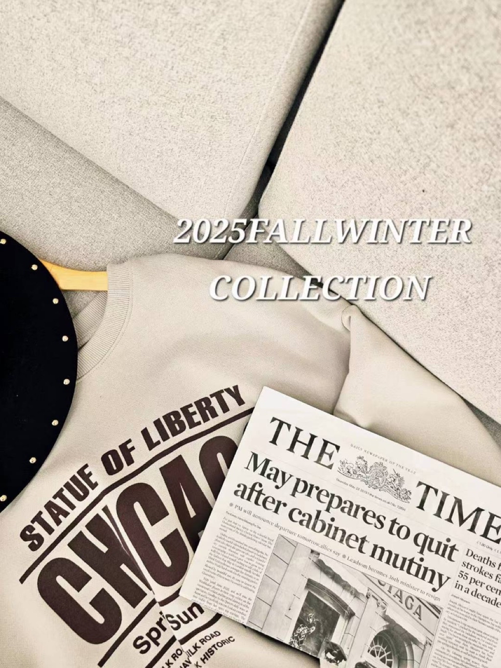 [ 7loong ] 正韓預購 時尚歐膩 25FW秋冬 英文字圖案背後摟空扭結大學T(共3色)
