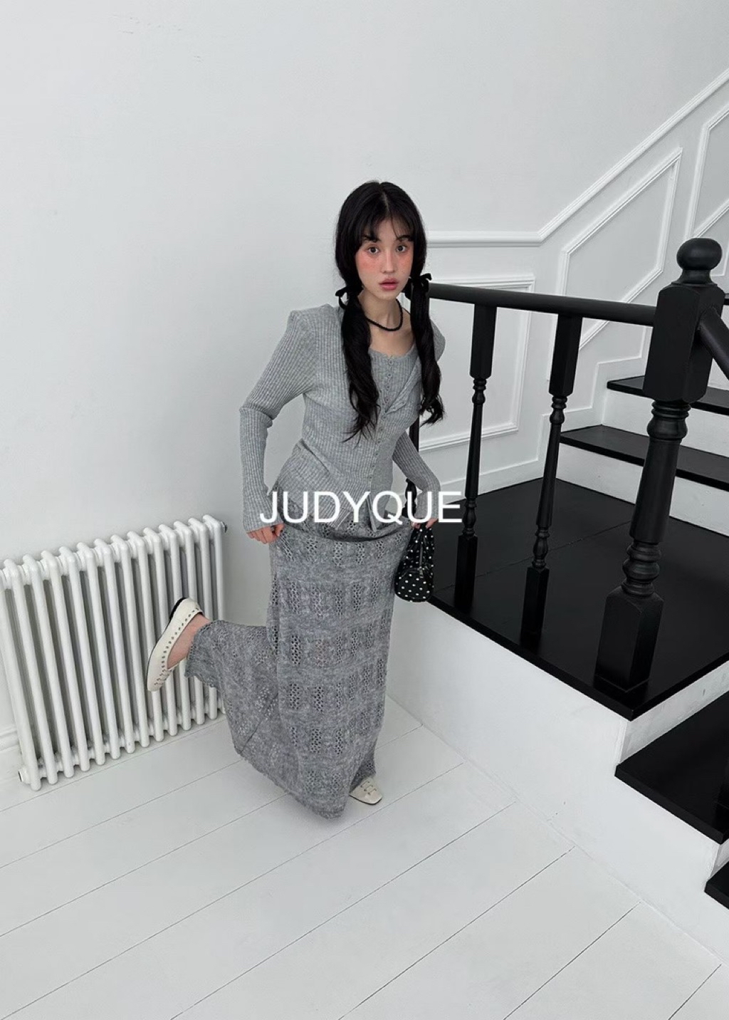 [ 7loong ] 正韓預購 Judyque 25FW秋冬 花紋針織長裙(共3色)