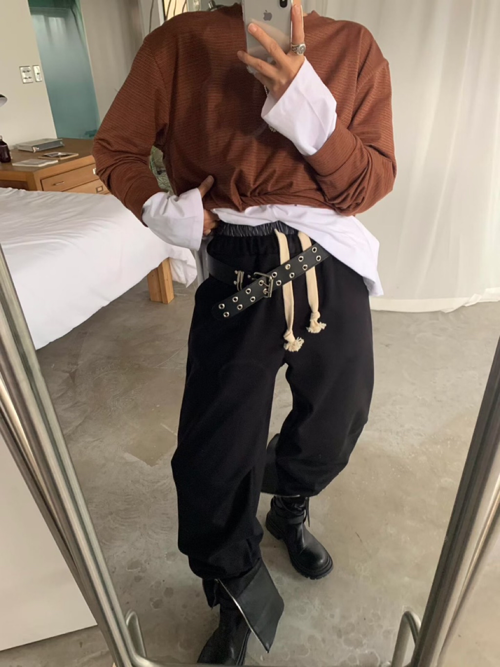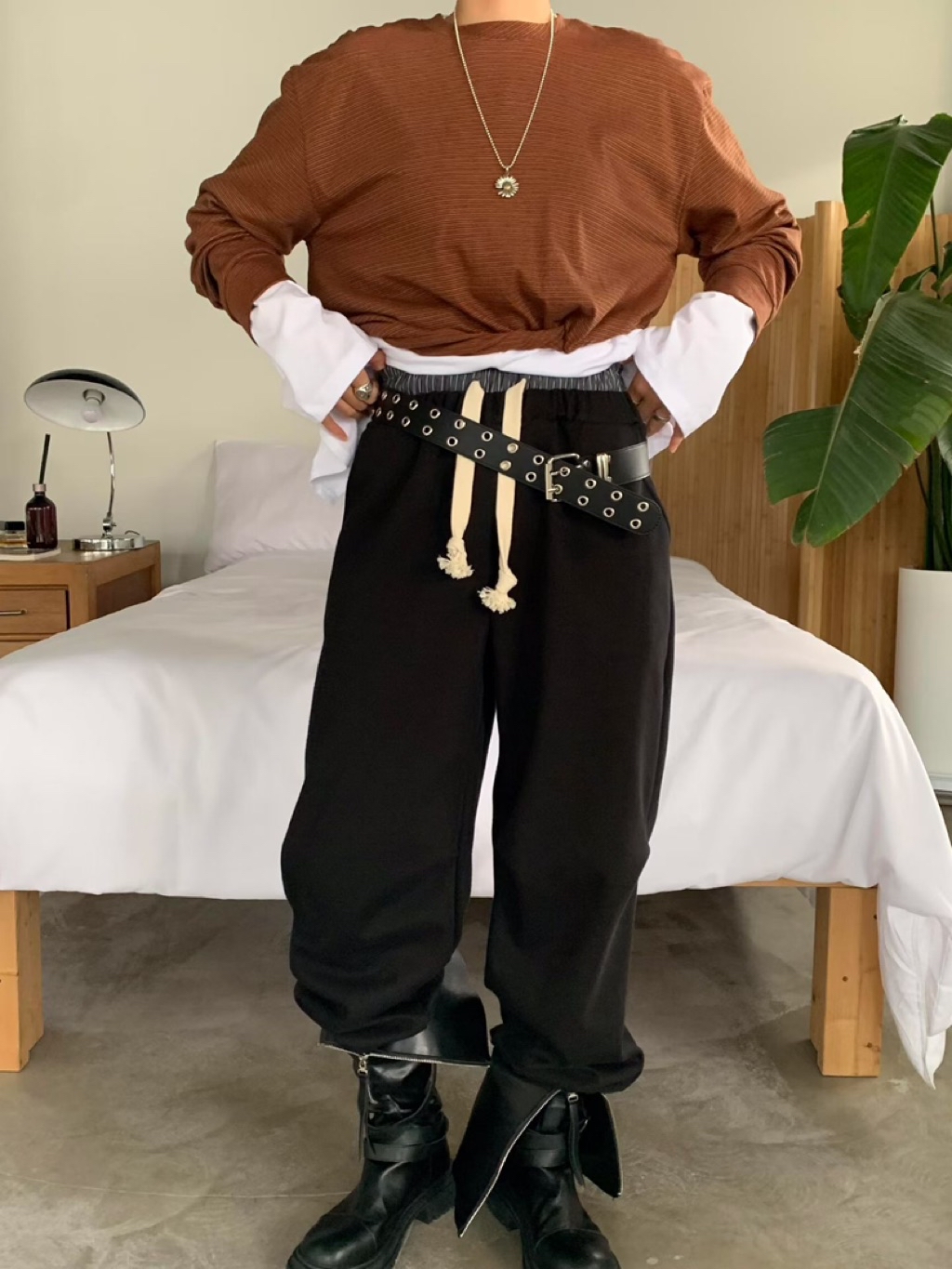 [ 7loong ] 正韓預購 5K雪熙 25FW秋冬 雙腰頭粗繩造型束腳棉長褲(共2色) 總分: 0 - 0 評價