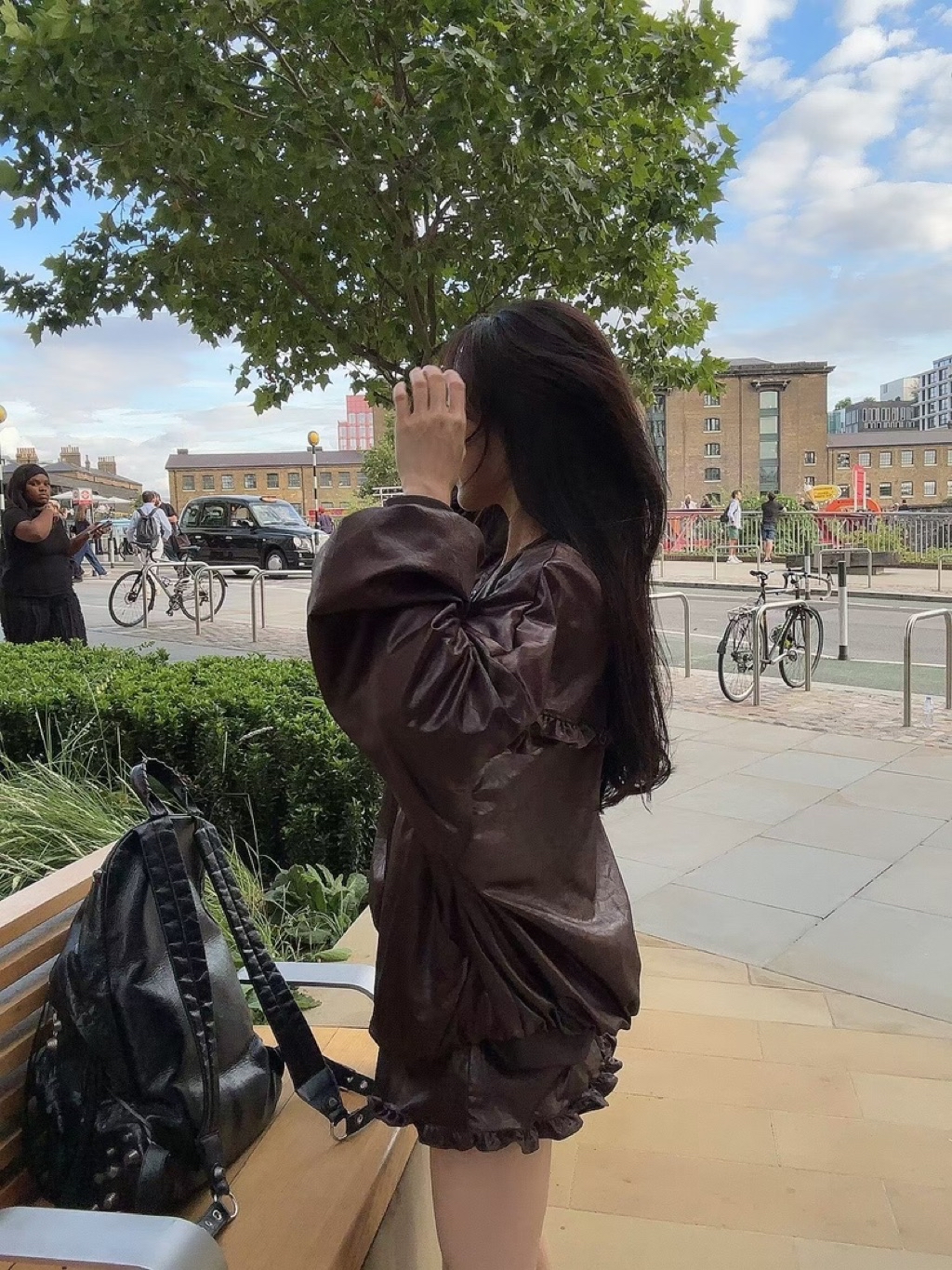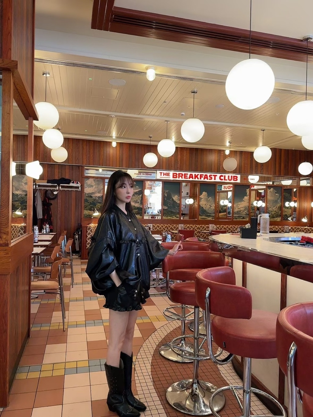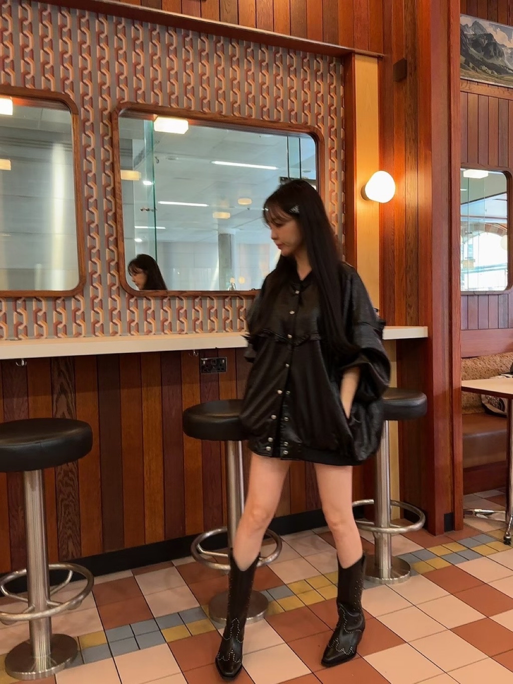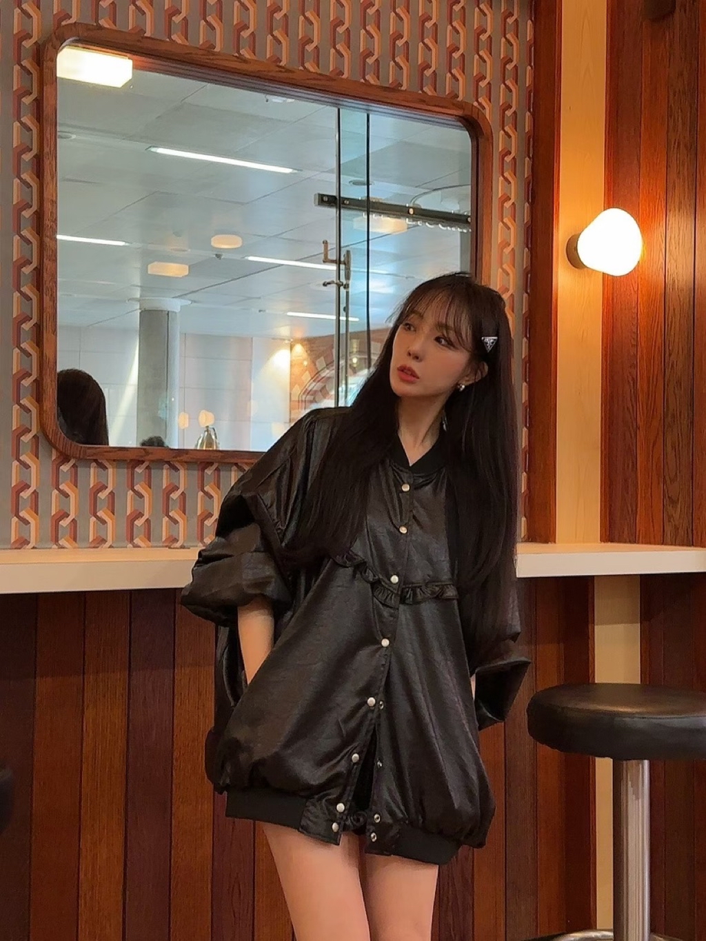 [ 7loong ] 正韓預購 太妍家 25FW秋冬 滾花邊寬鬆澎袖仿皮革棒球外套+仿皮革花邊下擺短褲(共2色)