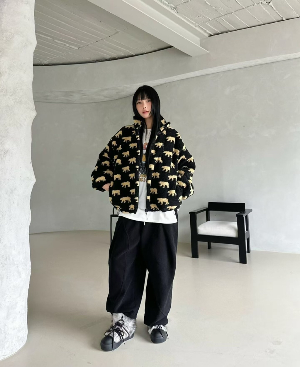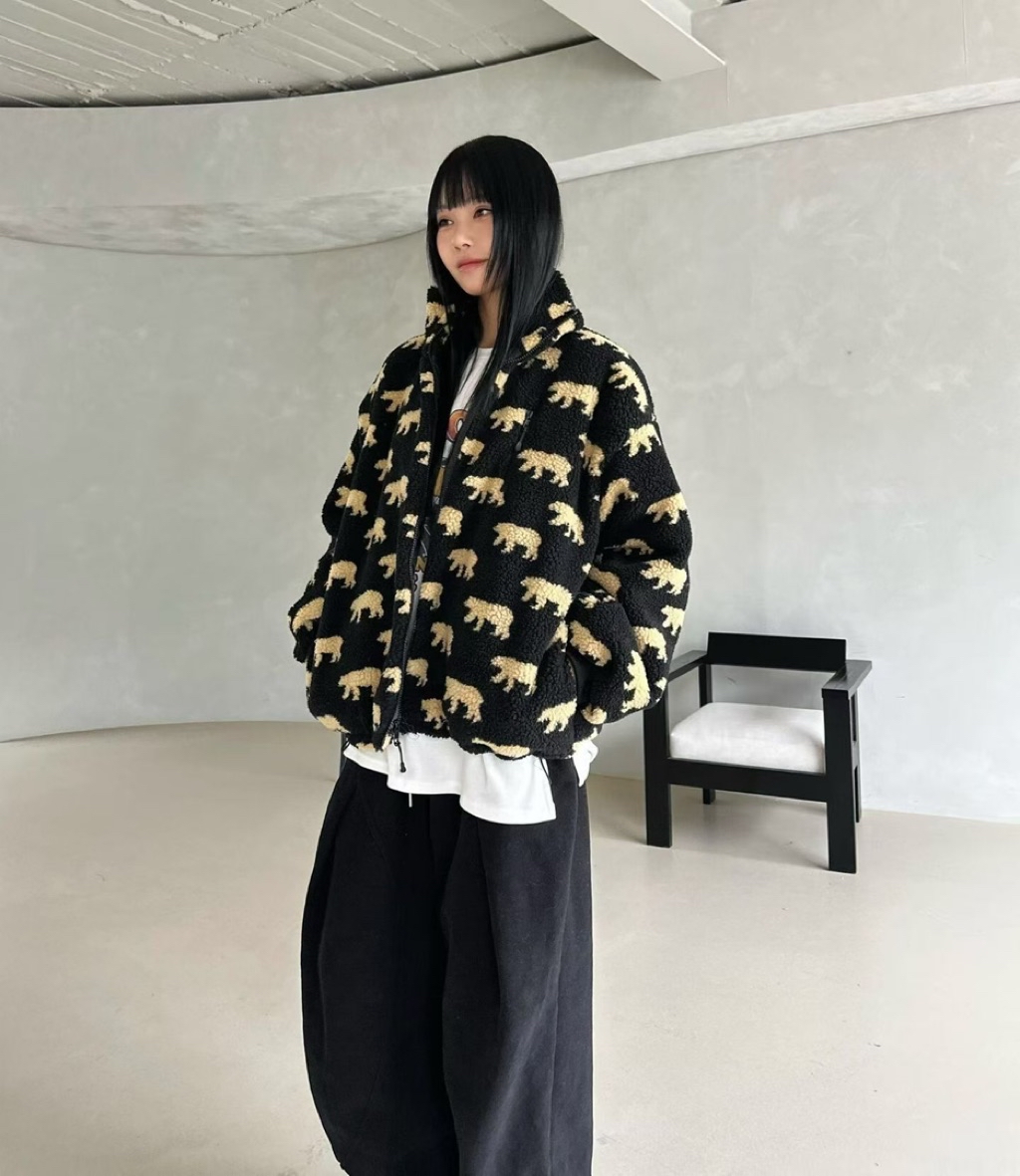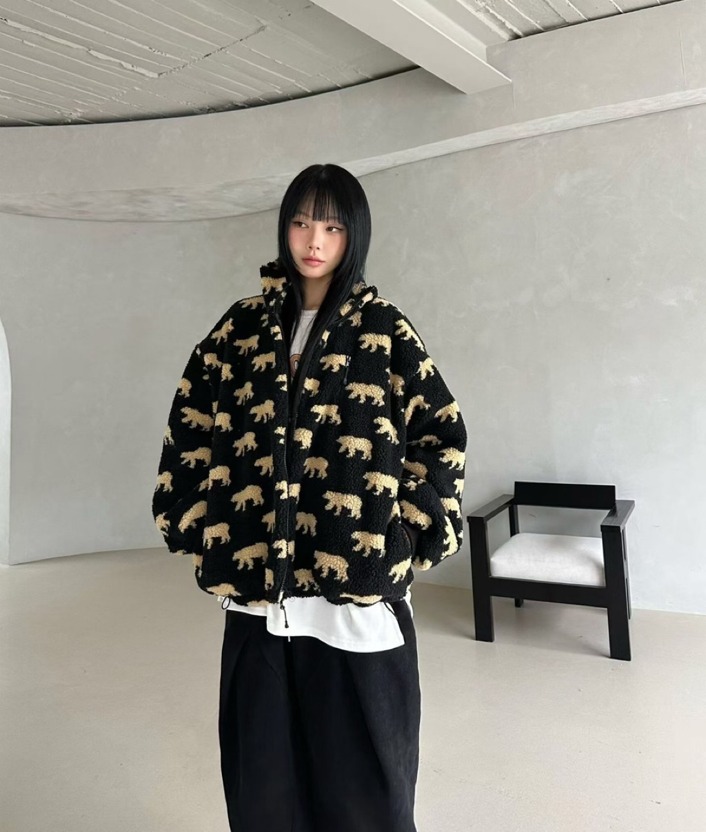 [ 7loong ] 正韓預購 帥氣歐膩 動物滿版胸前拉鍊口袋QQ刷毛內鋪棉外套(共2色) 總分: 0 - 0 評價