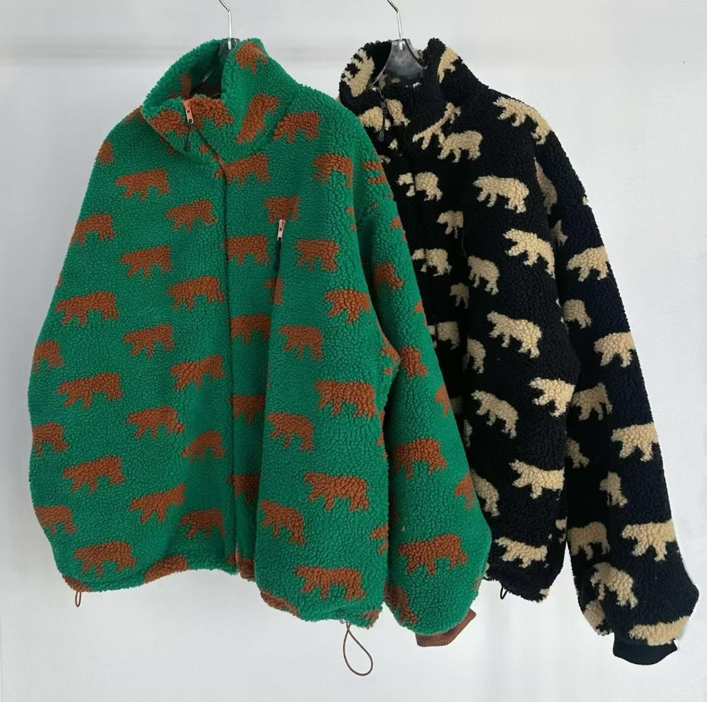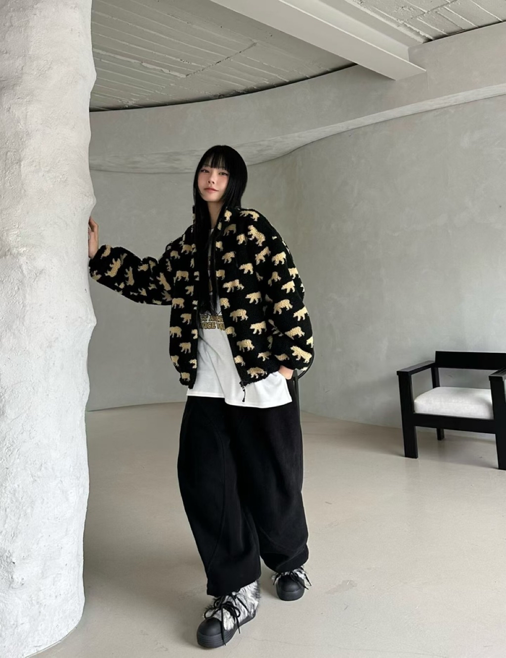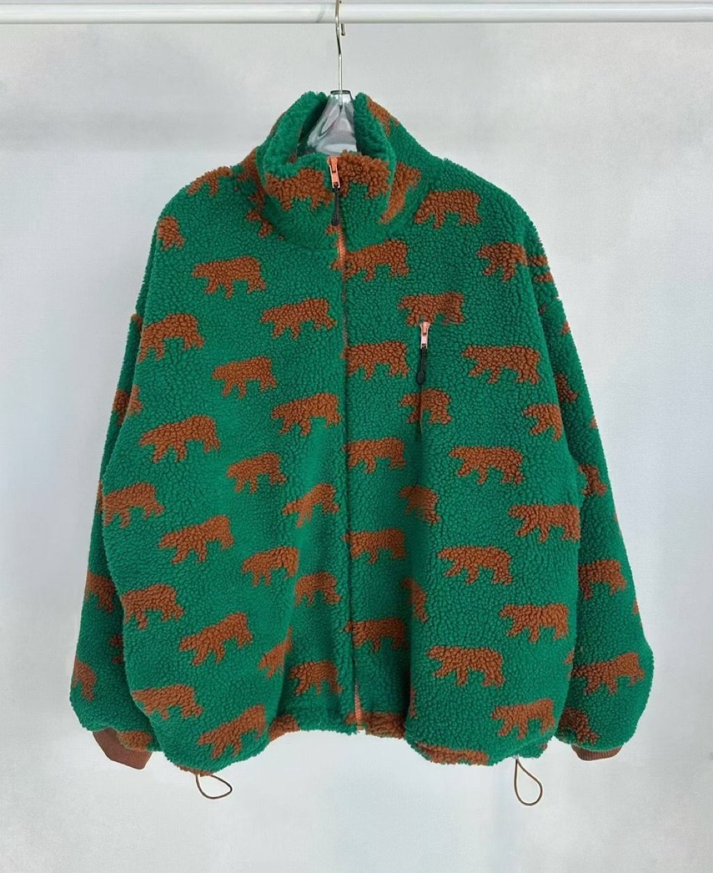 [ 7loong ] 正韓預購 帥氣歐膩 動物滿版胸前拉鍊口袋QQ刷毛內鋪棉外套(共2色)